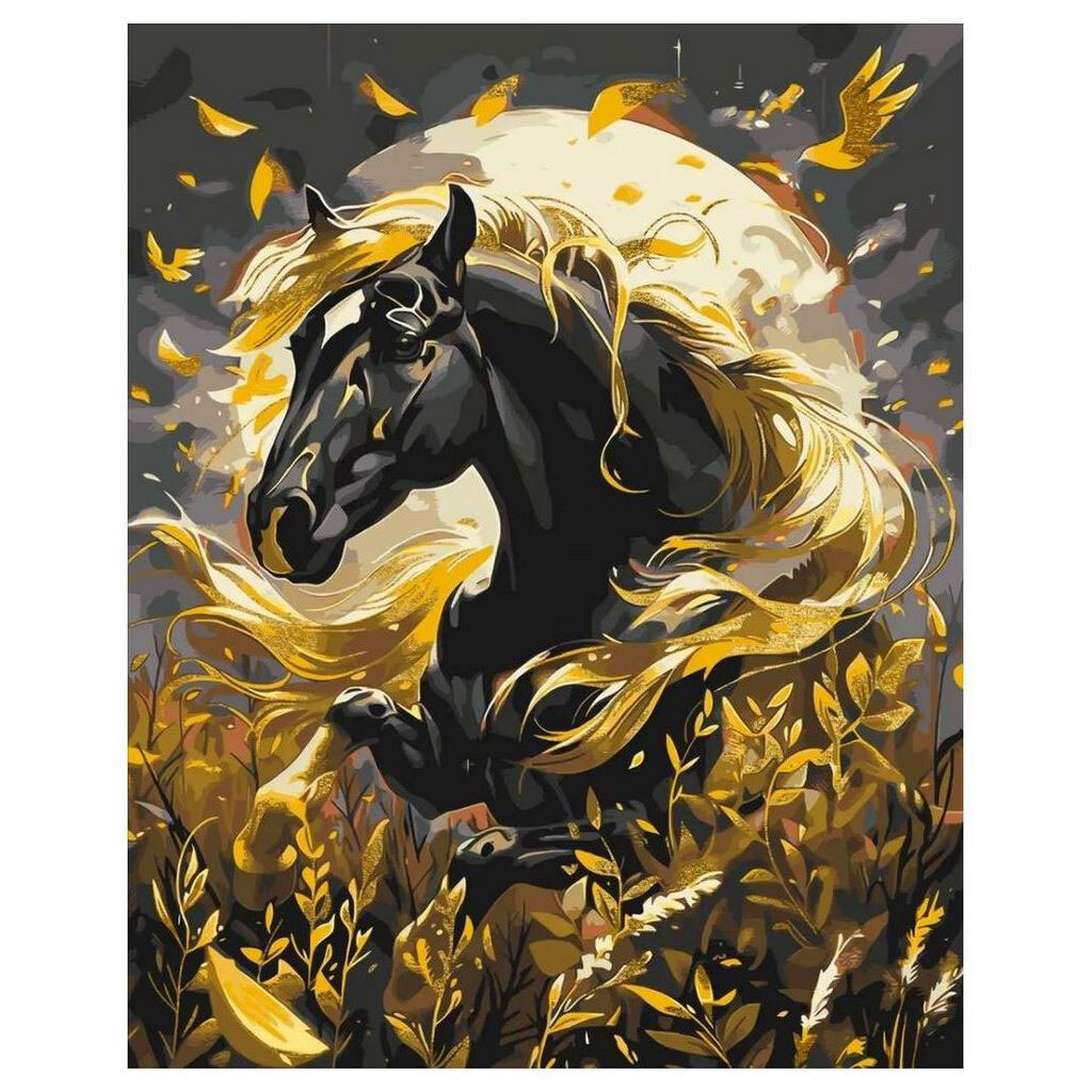 Картина за номерами Тварини. Чорний кінь із фарбами металік 40*50 см Орігамі LW 4070, Origami