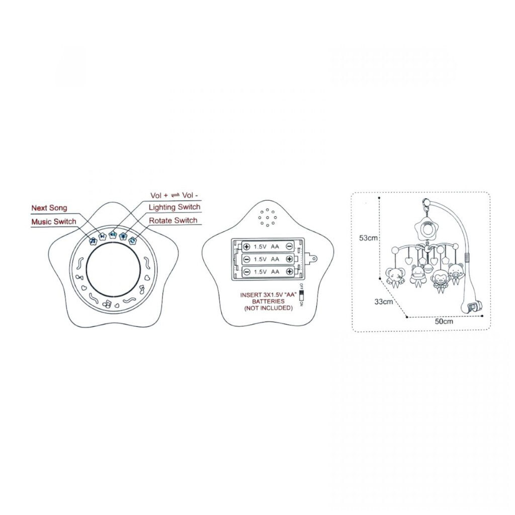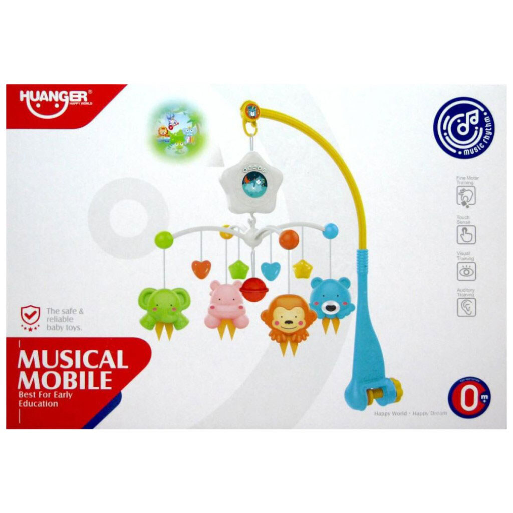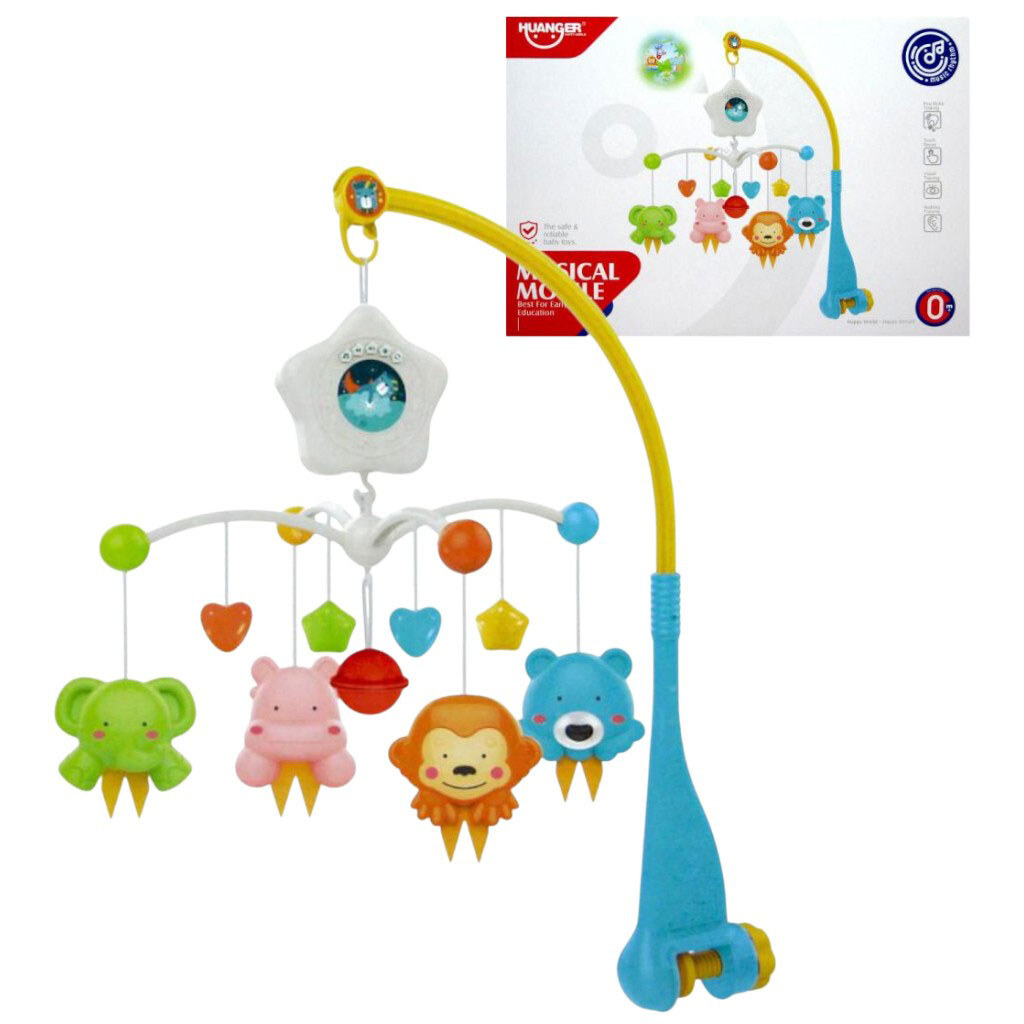 Карусель: мелодії, світлова проекція, фігурки тварин, брязкальце, в коробці, мікс квітів, Huanger