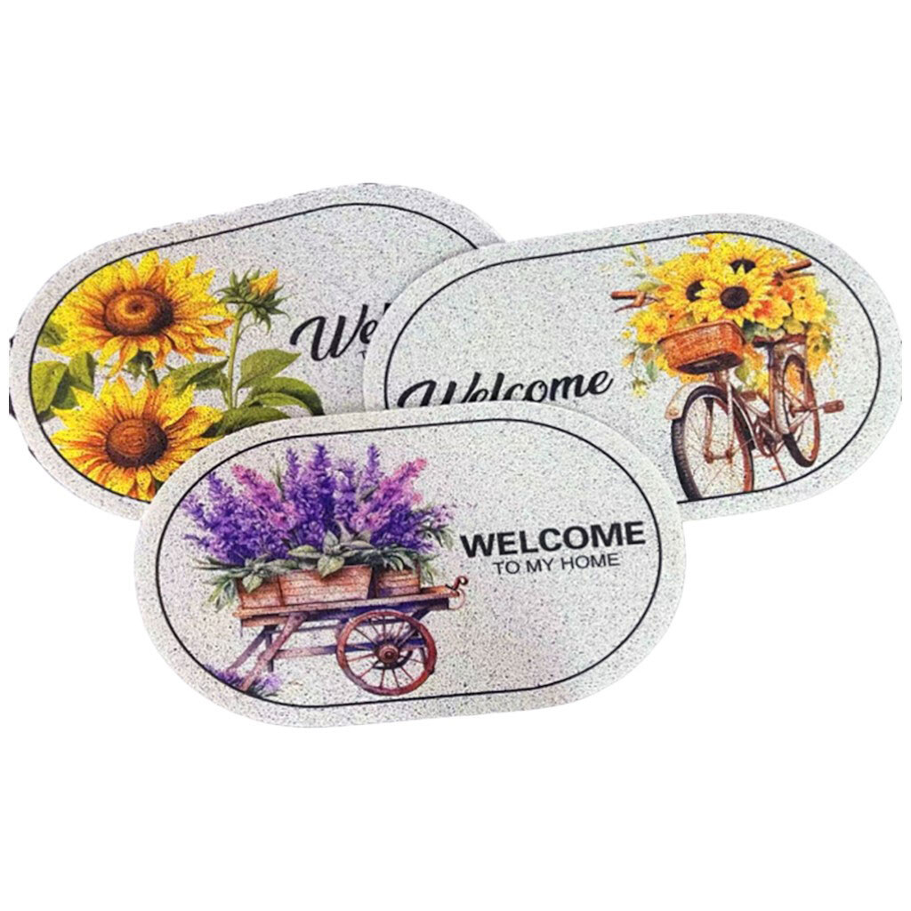 Килимок придверний овальний з принтом "Квіти", 40х60 см