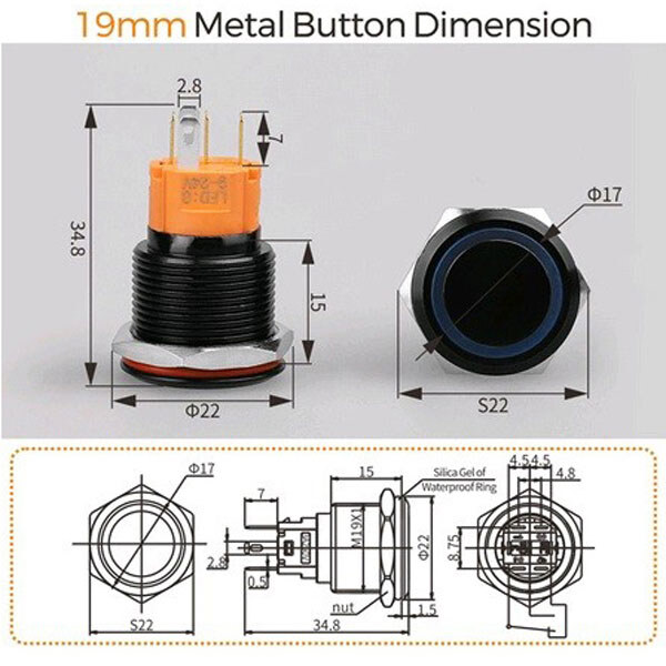 Примітка: Бренд:: LB | Діаметр, мм:: 19 | Колір світіння:: Немає | Фіксація:: Є | Форма кнопки:: Плоска | Ступінь захисту:: IP65
