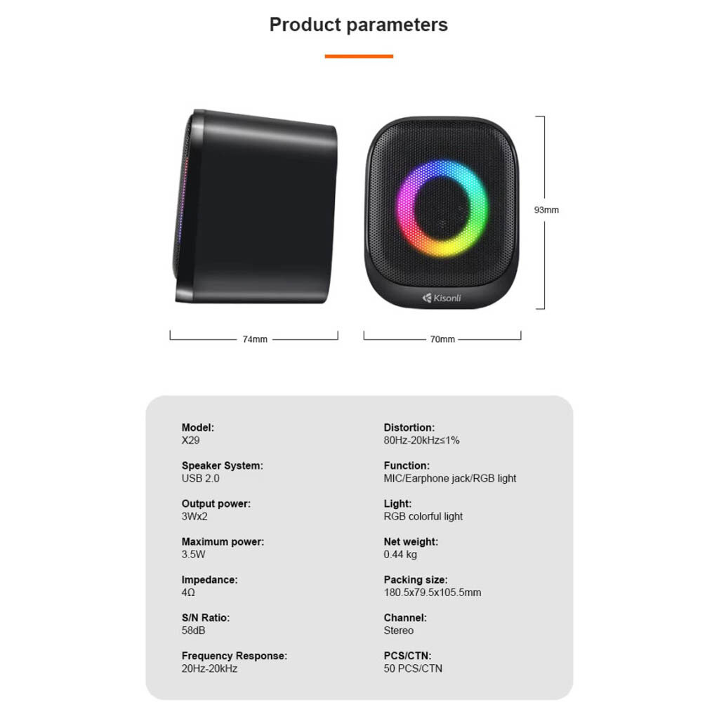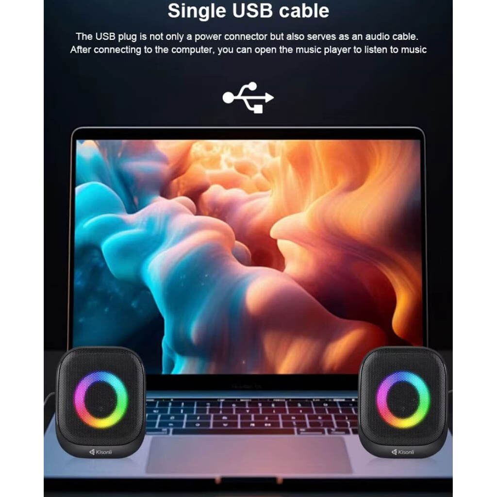 Колонки для комп'ютера Kisonli X29 RGB, Чорний