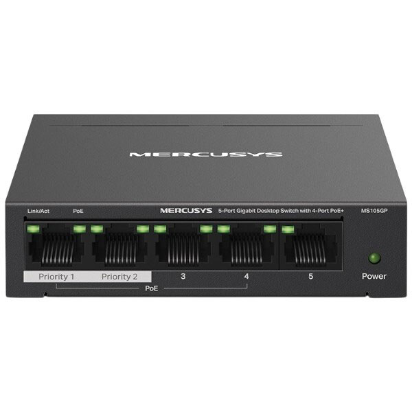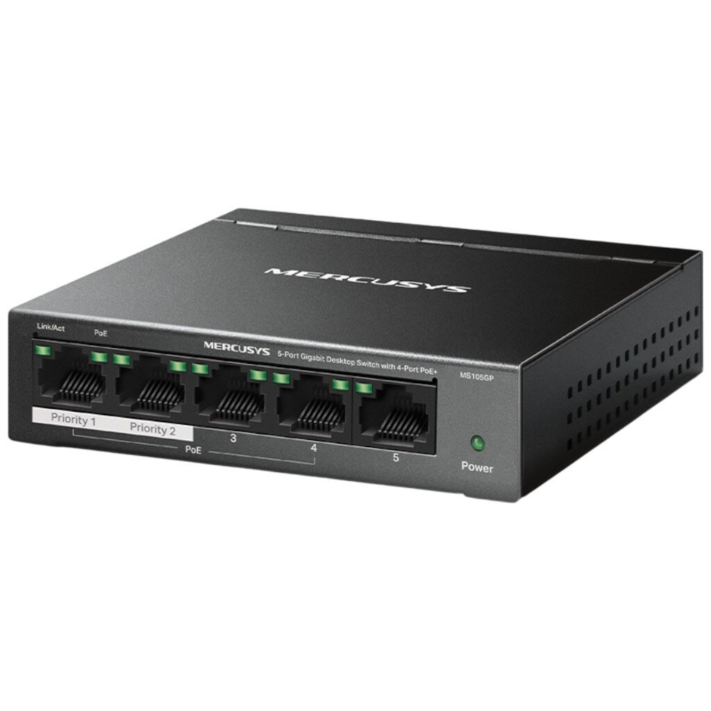 Комутатор Mercusys MS105GP, Чорний