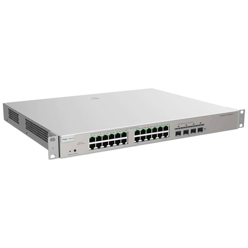 Примітка: 24xGE PoE+, 4xSFP, max PoE 370W, 19-inch Rack-mountable Stell Case, Ruijie Cloud, L3, 6KV surge protection