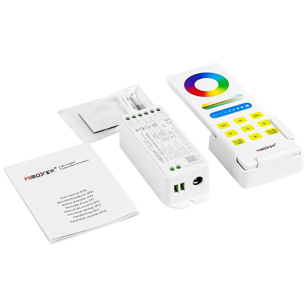 Примітка: Опис: Вхід: 12...24VDC. Вихід: 6A канал (15А модуль). Тип з'єднання: загальний анод. Контролер використовує бездротову технологію 2.4ГГц(RF), що широко використовується, з функціями низького енергоспоживання. Дистанція керування 30м. Пульт живлення 3V (2xAAA). Застосовується для RGB світлодіодних стрічок. Функції: зміна кольору (16 мільйонів кольорів), налаштування колірної температури, затемнення яскравості/насиченості, підтримка керування через смартфон (потрібний 2.4GHz шлюз), підтримка керування голосом через сторонні сервіси (потрібний 2.4GHz шлюз). Один контролер може передавати сигнали з пульта дистанційного керування на інший контролер у межах 30 м, відстань дистанційного керування може бути безмежною. | Вих. напруга: 12/24 VDC | Струм: 15 A | Габарити: 97x37x28 mm