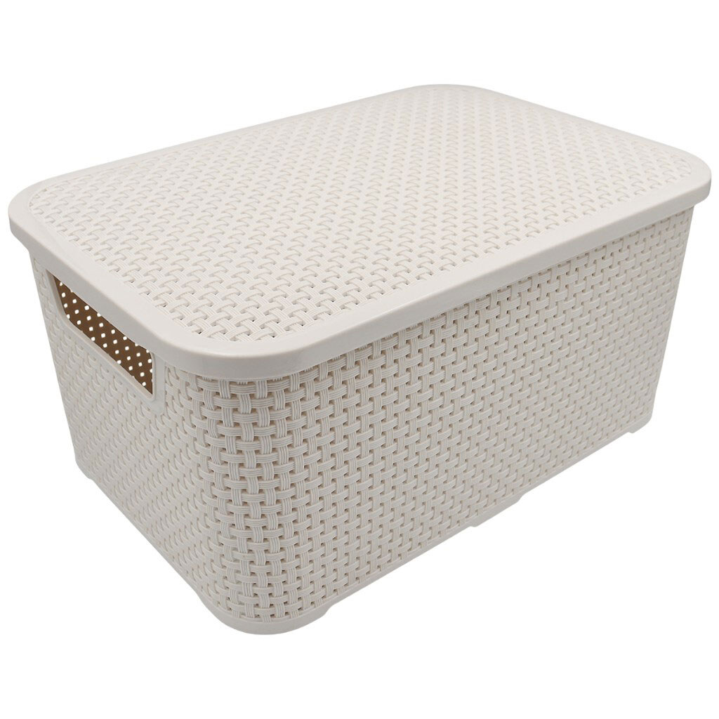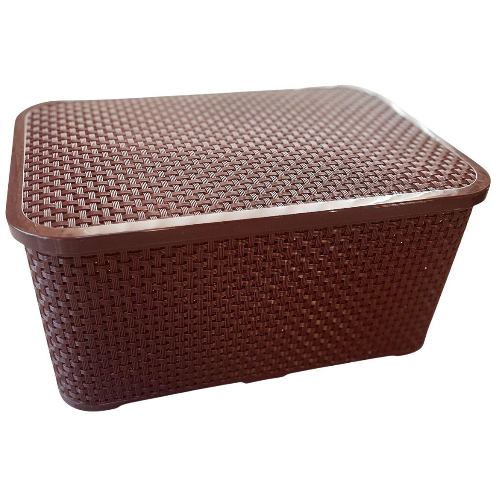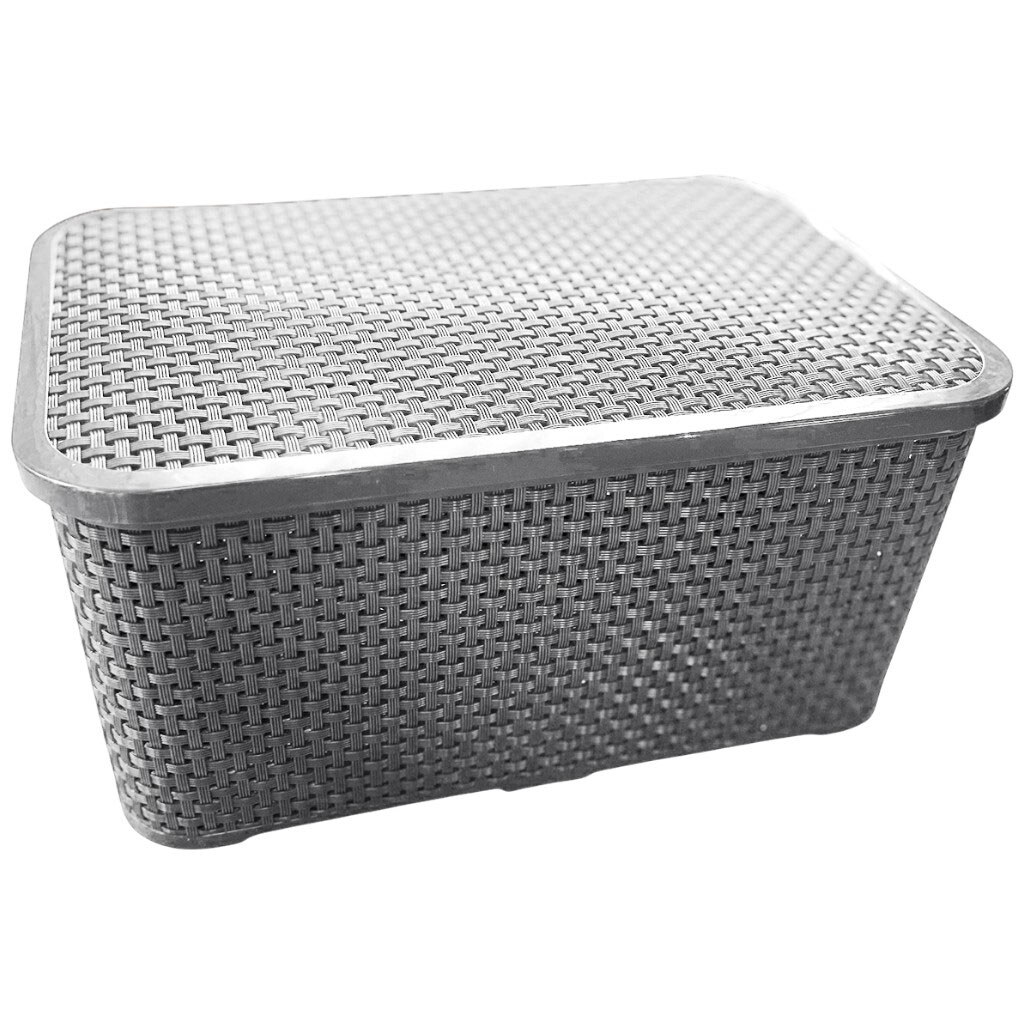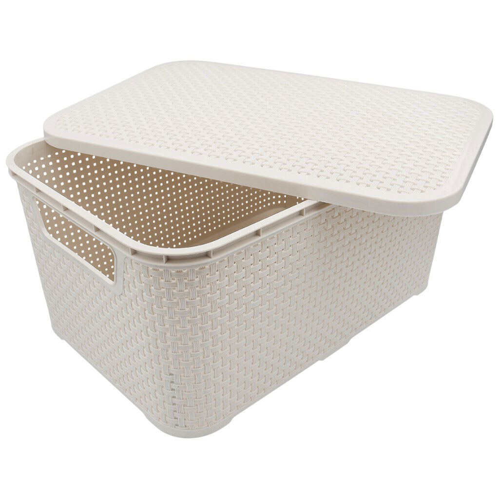Кошик для зберігання пластиковий з кришкою Ротанг, мікс, 17 л