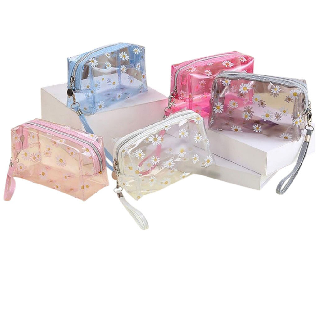 Косметичка жіноча силіконова прозора з принтом "Квіти"
