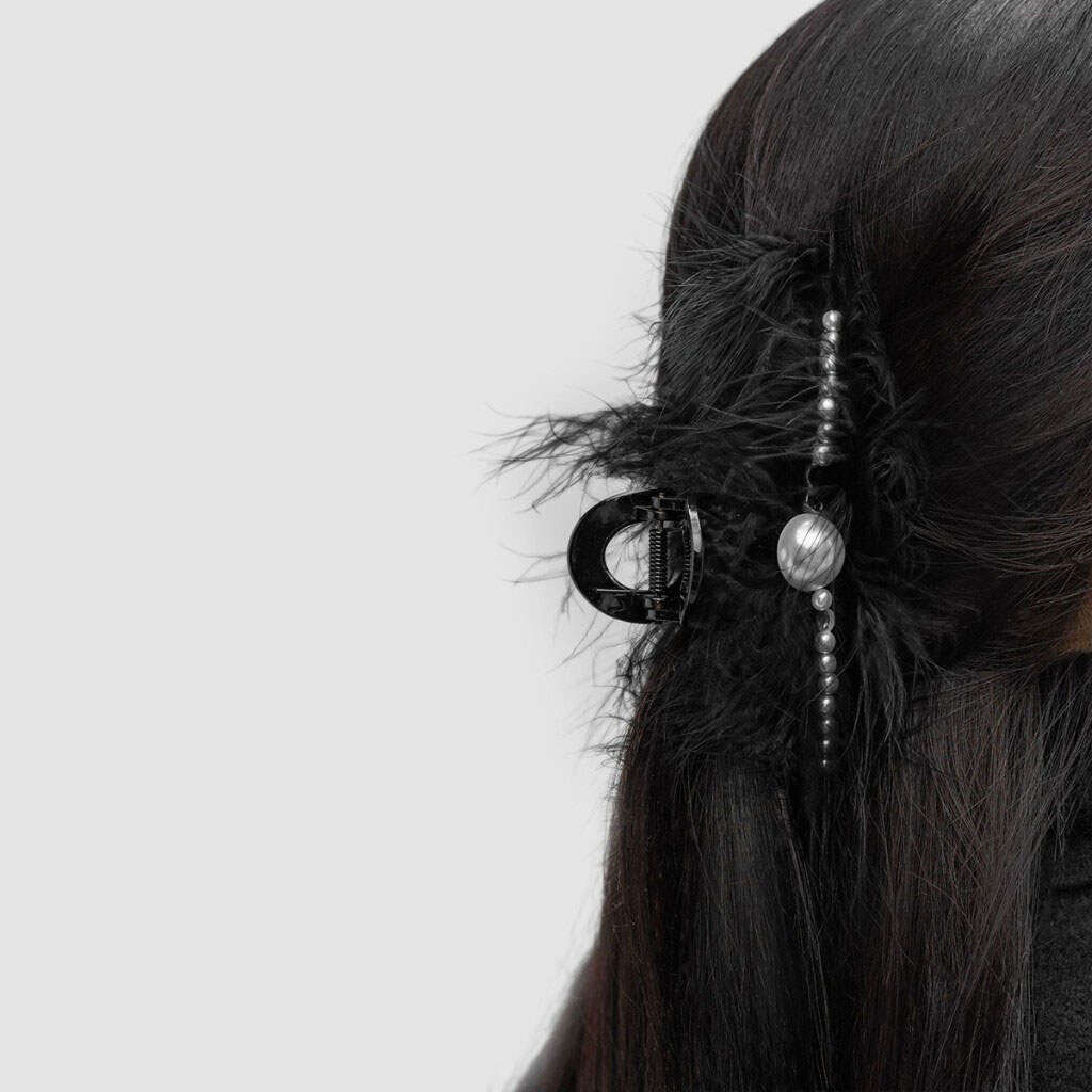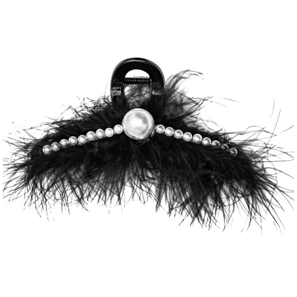 Краб для волосся пластиковий з пір'їнками, намистинами