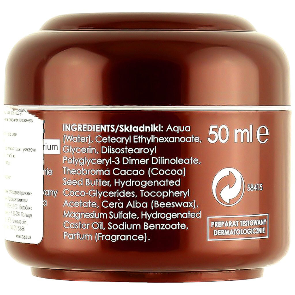Примітка: Клас косметики: Мас-маркет | Коментар: Інгредієнти: вітамін e, вітамін а, грецький горіх, какао, канола, лецитин, олія ши (карите), пальма, пантенол, соя, убіхінон | Країна виробник: Польща | Об'єм: 50 мл | Призначення: Антивікове | Живлення | Зволоження | Тонізування | Стать: Для жінок