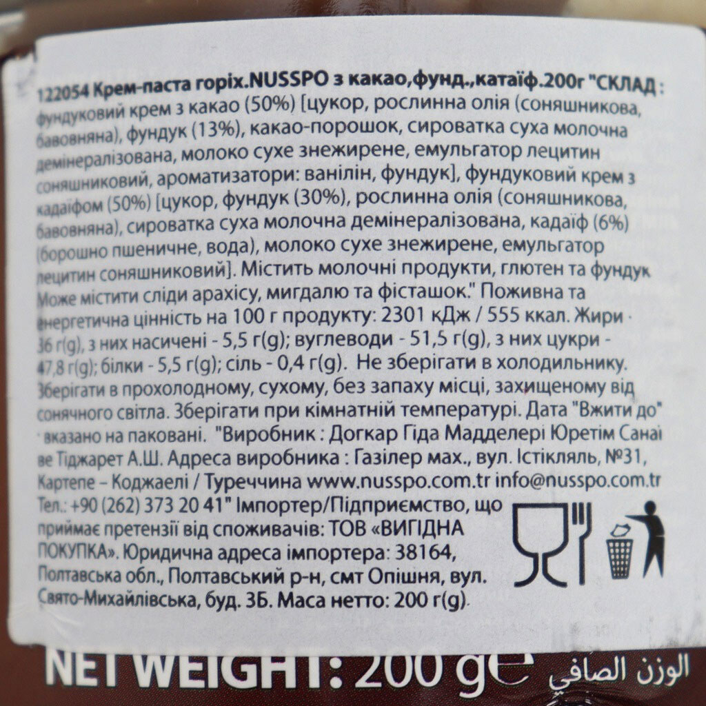 Крем-паста горіхом NUSSPO з какао, фундуком і катаїфом 200 г