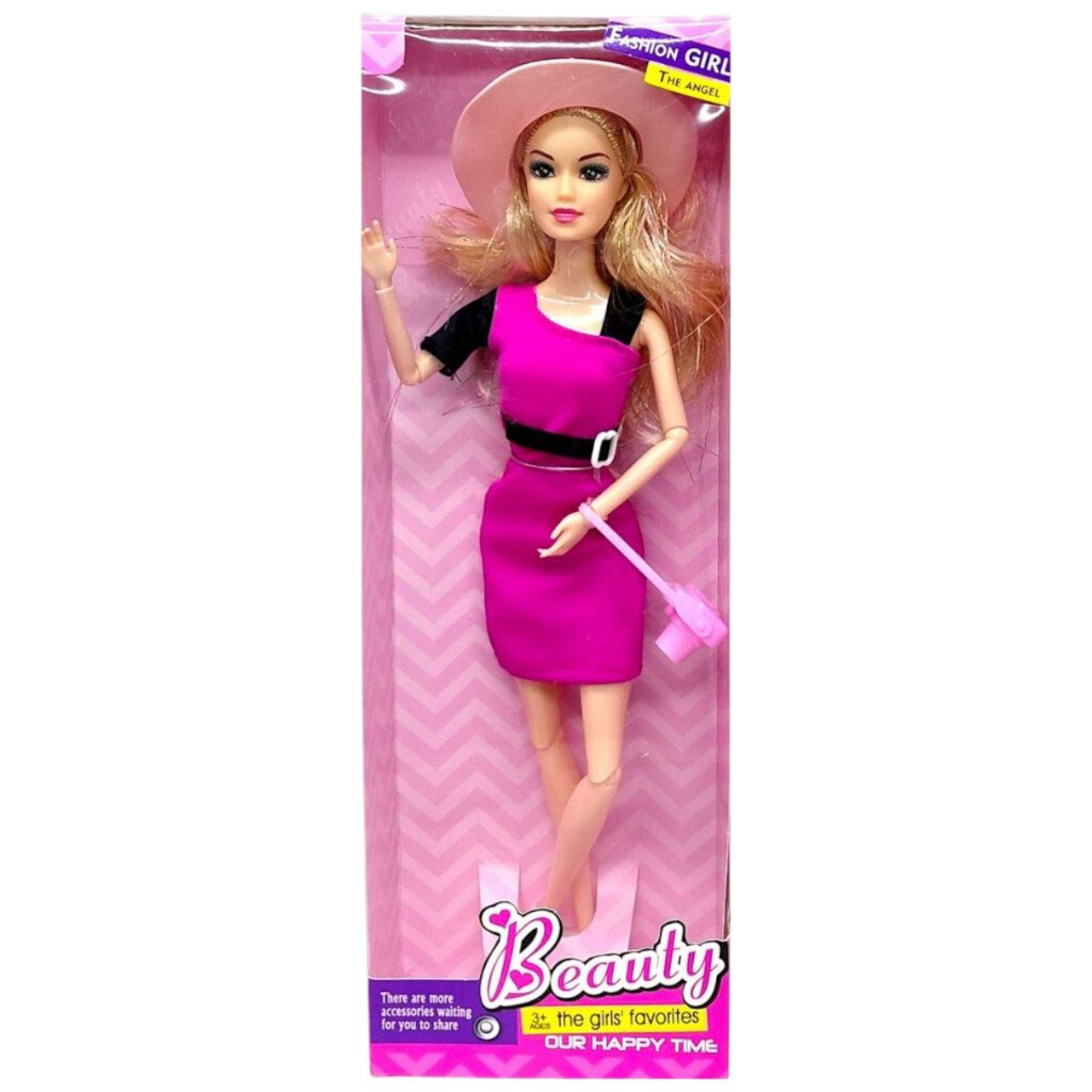 Лялька, типу Барбі, в стильному одязі, малинове плаття, Mic