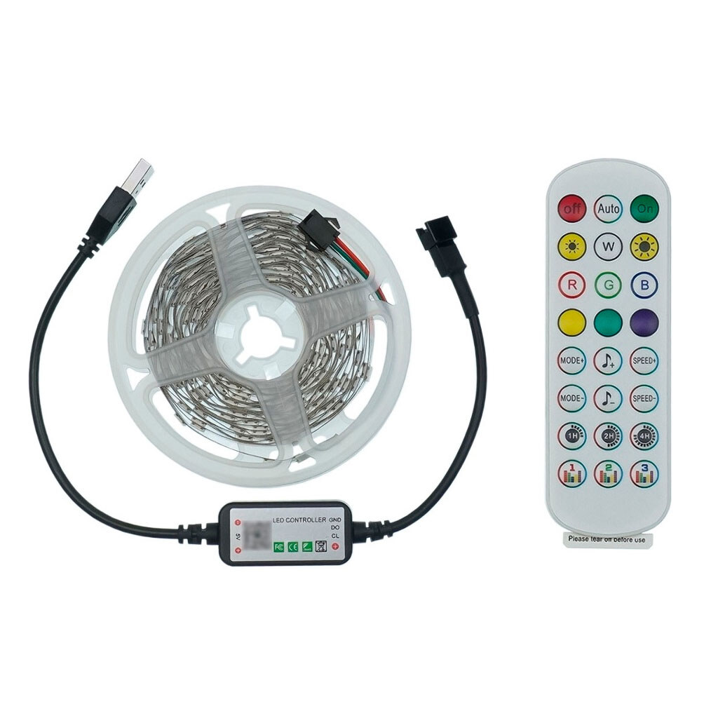 Примітка: 5V, IP 20, з Bluetooth та пультом, датчиком звуку, на самоклейці