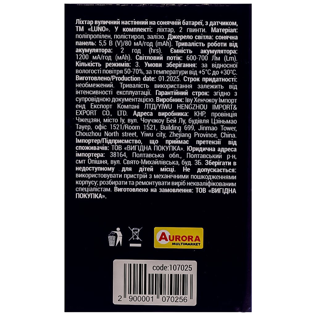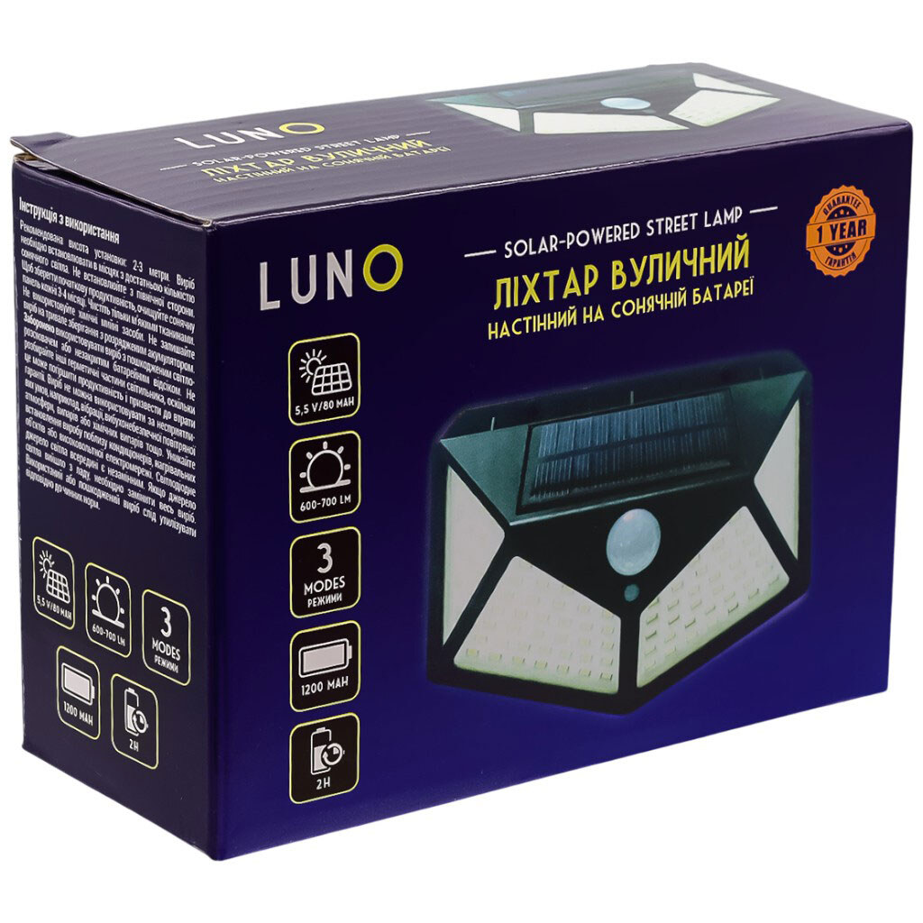 Ліхтар вуличний настінний на сонячній батареї з датчиком LUNO