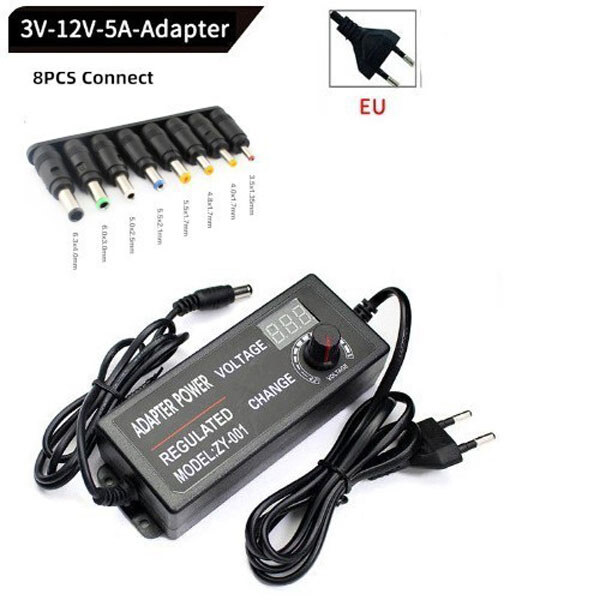 Примітка: Вихідна напруга , Вольт: 3-12 | Вихідний струм: 5 A | Вихідна потужність: 15-60 W | Габаритні розміри, мм: 133х50х32мм | Тип роз'єму: Универсальный | Довжина кабеля: 2 м | Конструктивне виконання: Сетевой адаптер