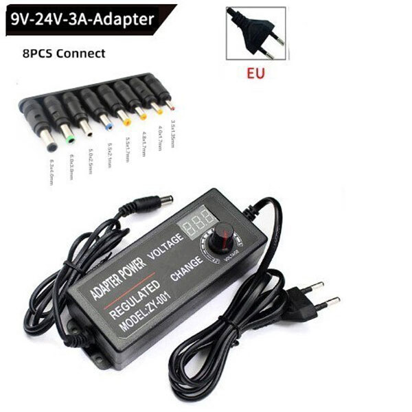 Примітка: Вихідна напруга , Вольт: 9-24 | Вихідний струм: 3 A | Вихідна потужність: 27-72 W | Габаритні розміри, мм: 133х50х32мм | Тип роз'єму: Универсальный | Довжина кабеля: 2 м | Конструктивне виконання: Сетевой адаптер