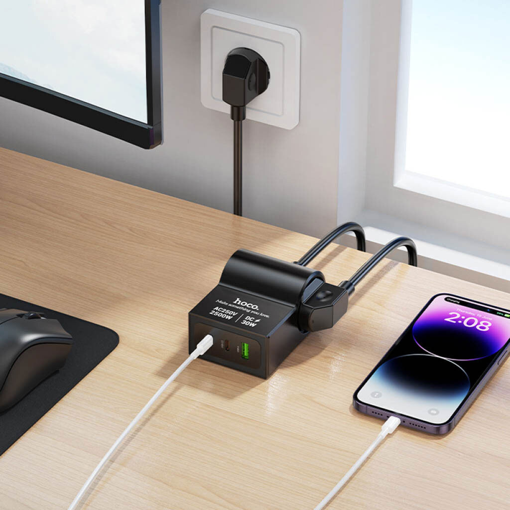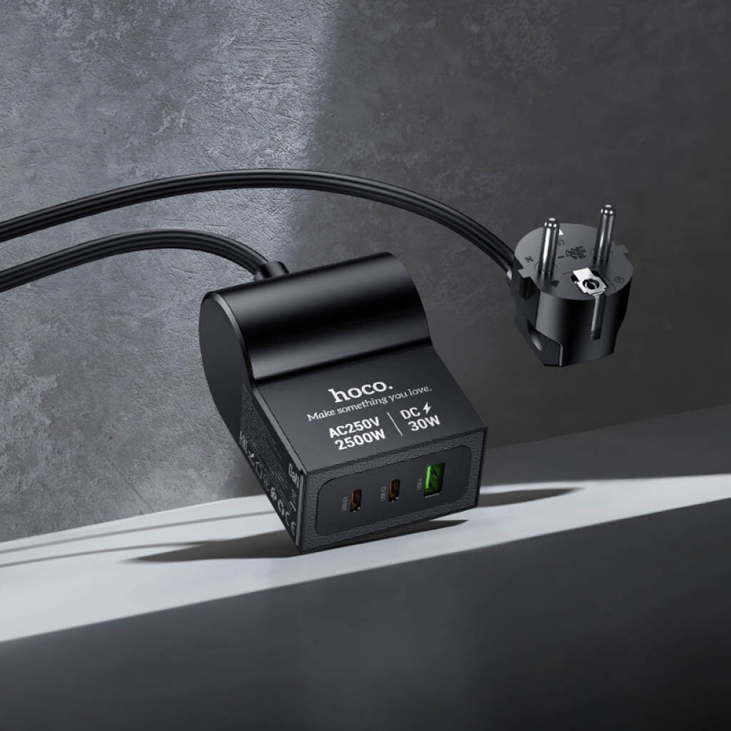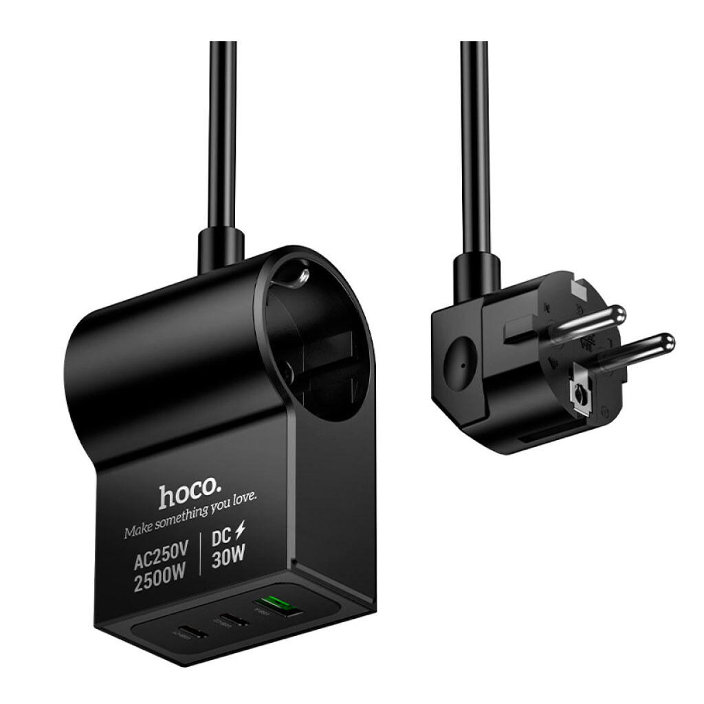Мережевий подовжувач Hoco AC33 Win, 1.5 м., Чорний