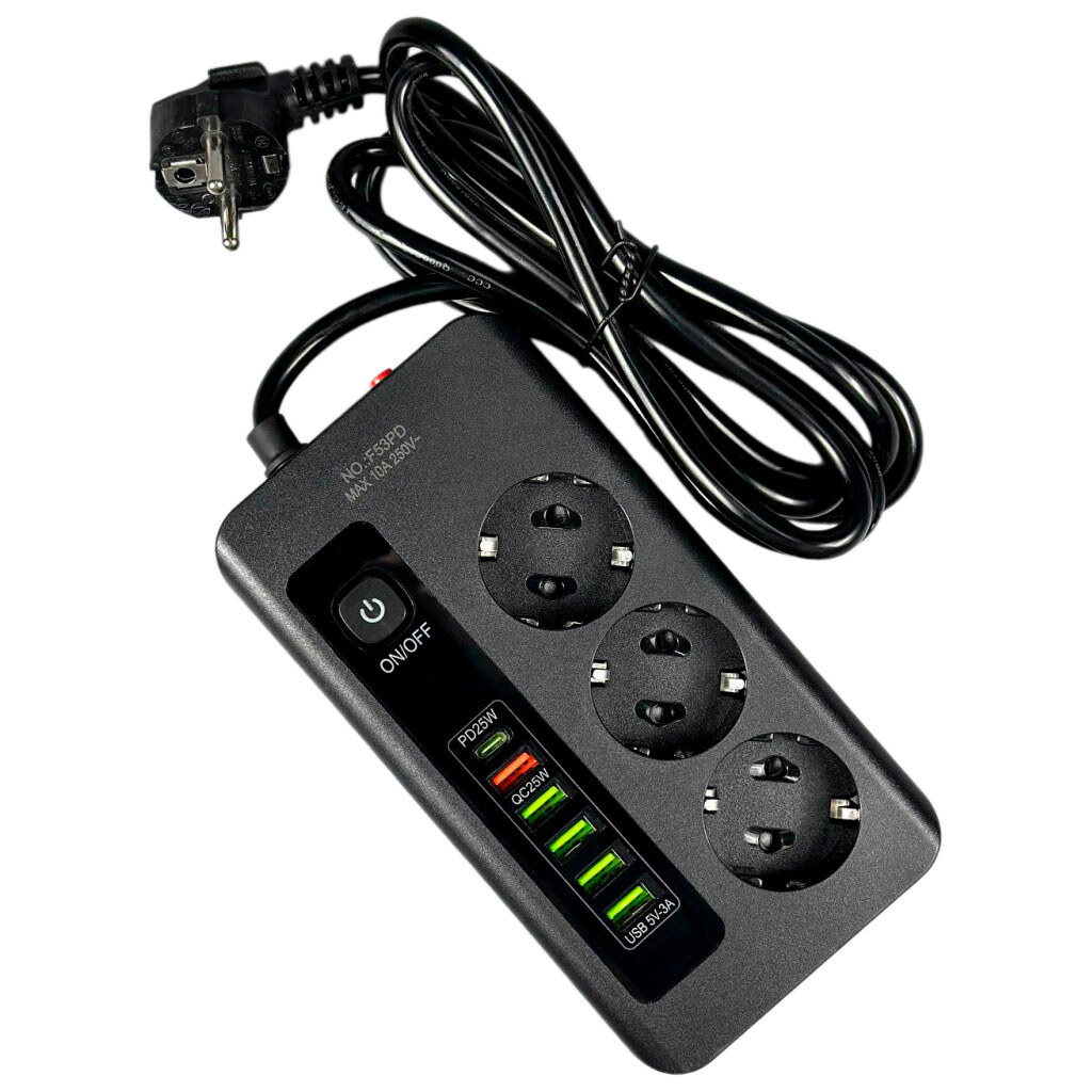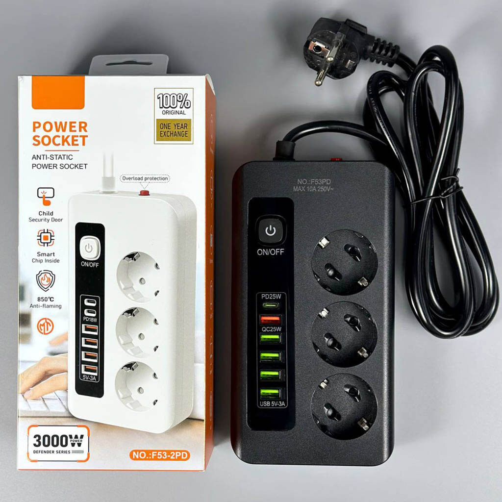 Примітка: 5USB+Type-C, 3 розетки, 3000W