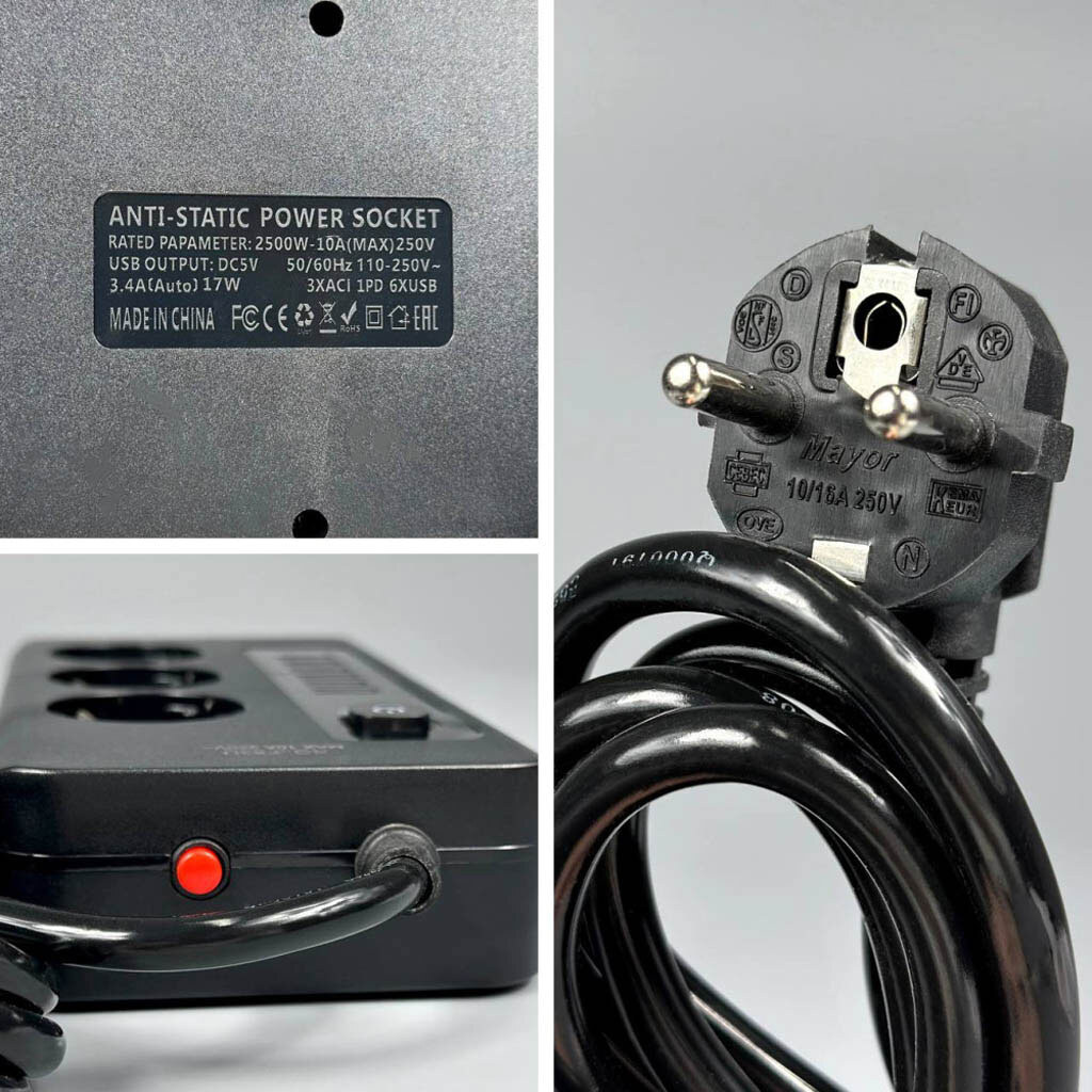 Мережевий подовжувач Power Socket F53U, 2.0 м., Чорний