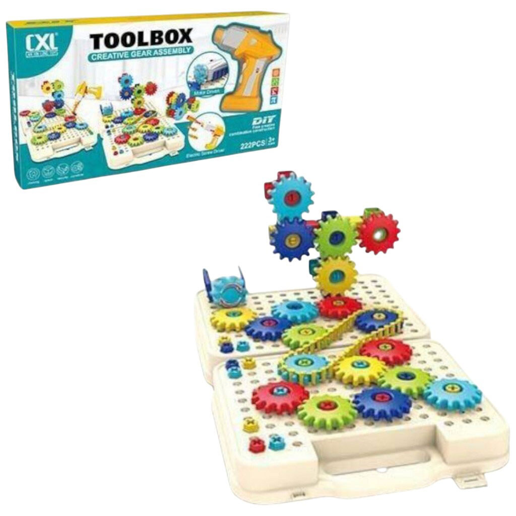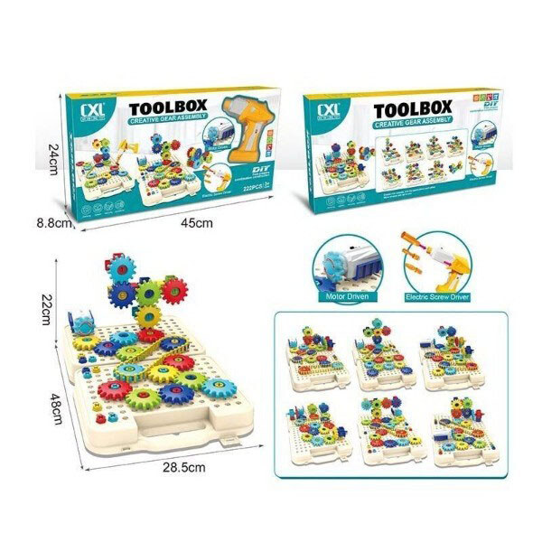 Мозаїка, 222 деталі, шуруповерт, мотор, що знімається, реверс, в коробці, Can Xin Long Toys