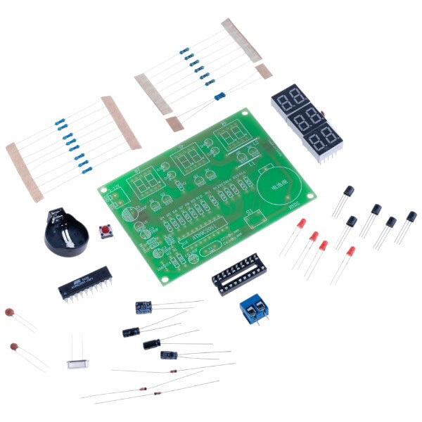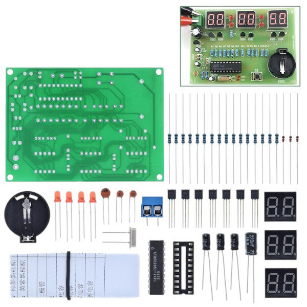 Примітка: Опис: Набір для збирання годинника на AT89C2051. Можливість встановлення 2х будильників. Похибка +/-1сек на 24 години. Харчування: 3...5В. Розмір: 89,9 х64, 9мм