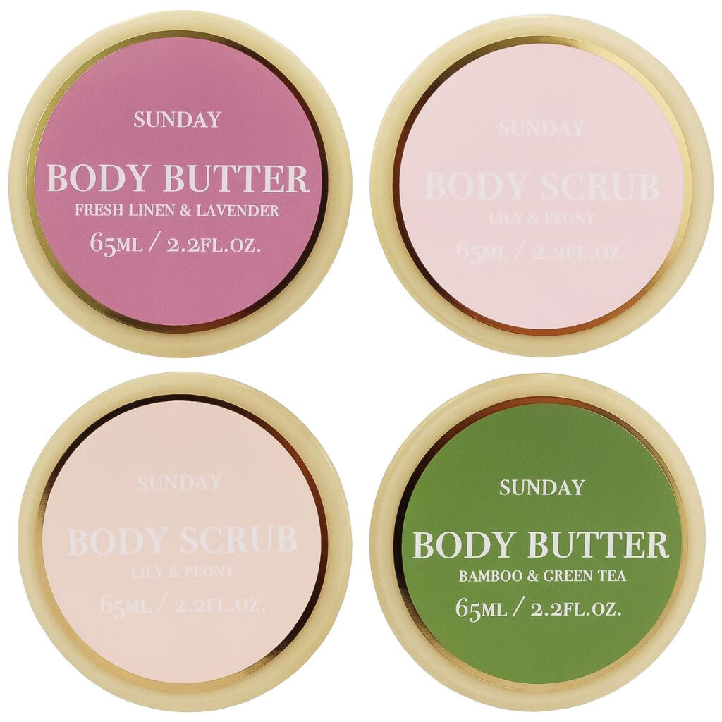 Набір для тіла жіночий подарунковий: скраб + масло, 4 шт х 65 мл