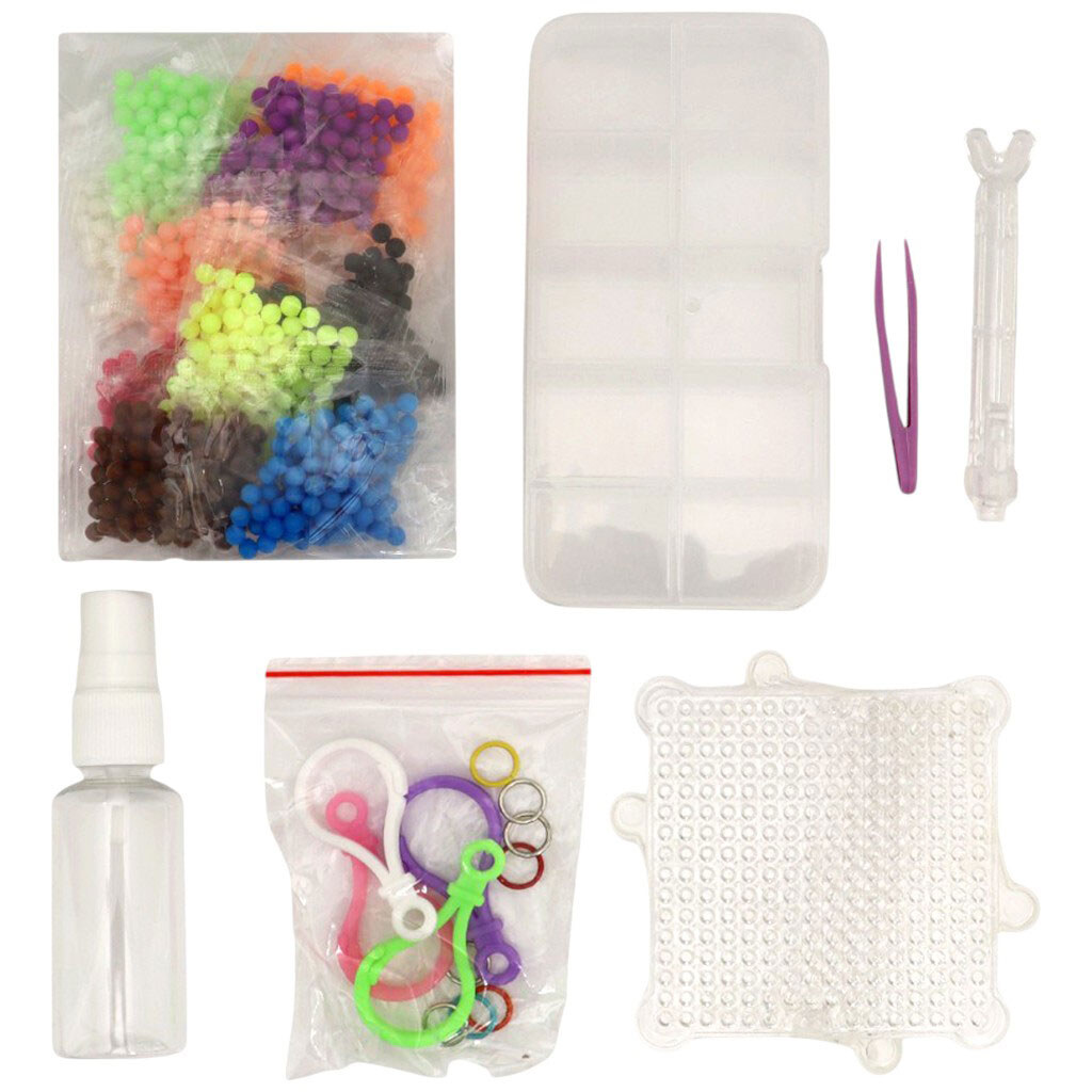 Примітка: Комплектація: Підкладка 2шт, Пульверизатор 1шт, Пінцет 1шт, Ручка для кульок 1шт, Намистини – 1000 шт (10 кольорів по 100 шт), Картки зі зразками – 6 шт, З'єднувальні кільця 8шт, Карабін для підвішування 4 шт, Інструкція | Країна виробник: Китай | Матеріал: Полівінілацетат, полістирол | Розмір упаковки: 21х17х5 см