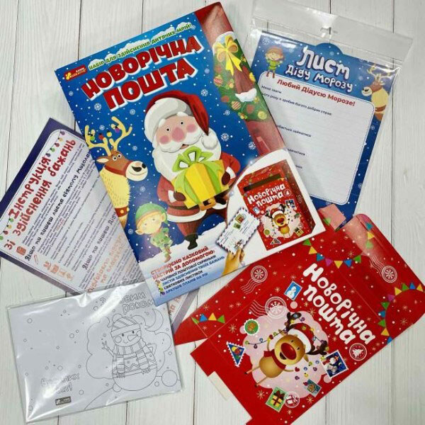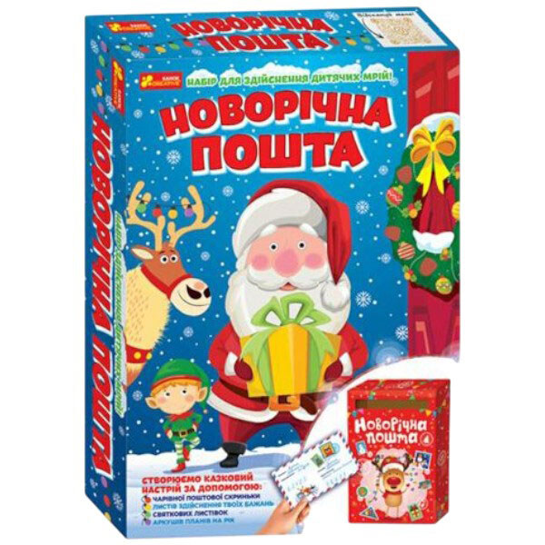 Примітка: Мова: Українська | Упаковка: Коробка | Колір: Різноцвіт | Вага в упаковці: 330 г | Габарити в упаковці: 4 x 23.5 x 33.5 см | Країна виробник: Україна | Матеріал: Комбінований | Комплектація: Ящик "Новорічна пошта", листи до Святого Миколая, листи Діду Морозу, новорічні листівки, листи "мої новорічні плани"
