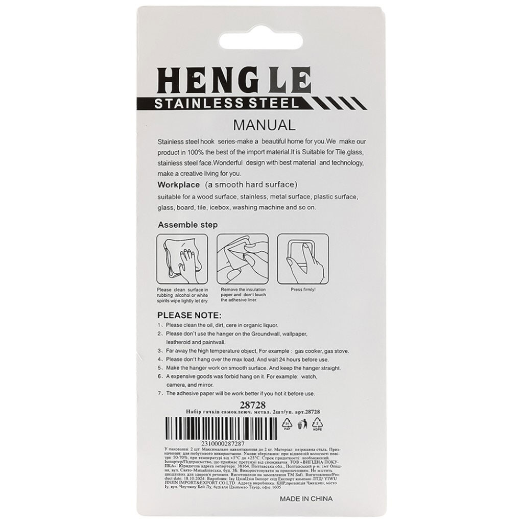 Набір гачків самоклеючі метал (2шт/бліст) R84682 ТОП
