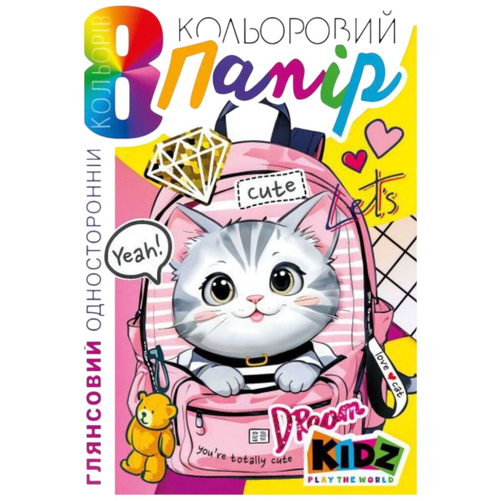 Набір кольорового паперу односторонній, глянсовий 210х297 мм, 8 аркушів, Art Studio Of Happiness