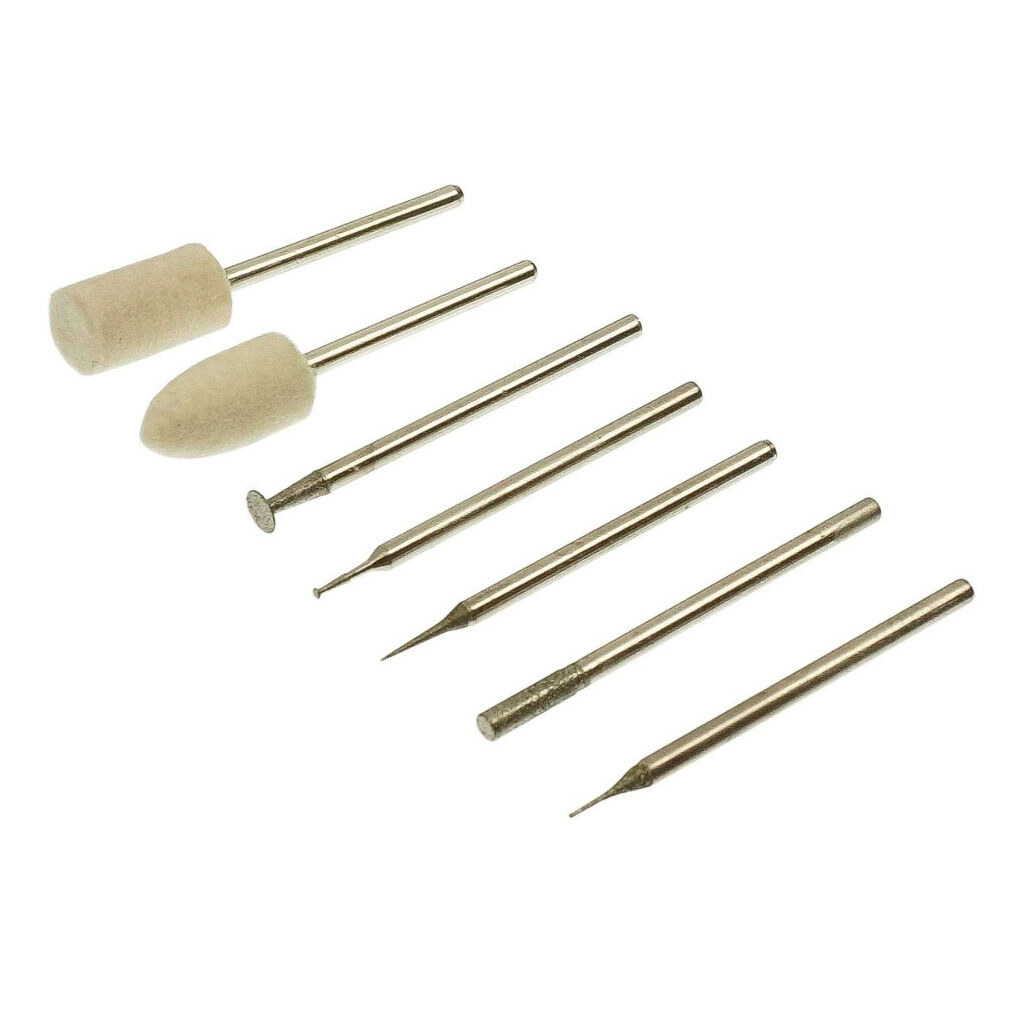 Примітка: 7 в 1 (повстяні шарошки циліндр/конус, алмазні фрези A2.5mm/ A0.6mm/ K1.0mm/ K4.0mm/ D0.1mm)