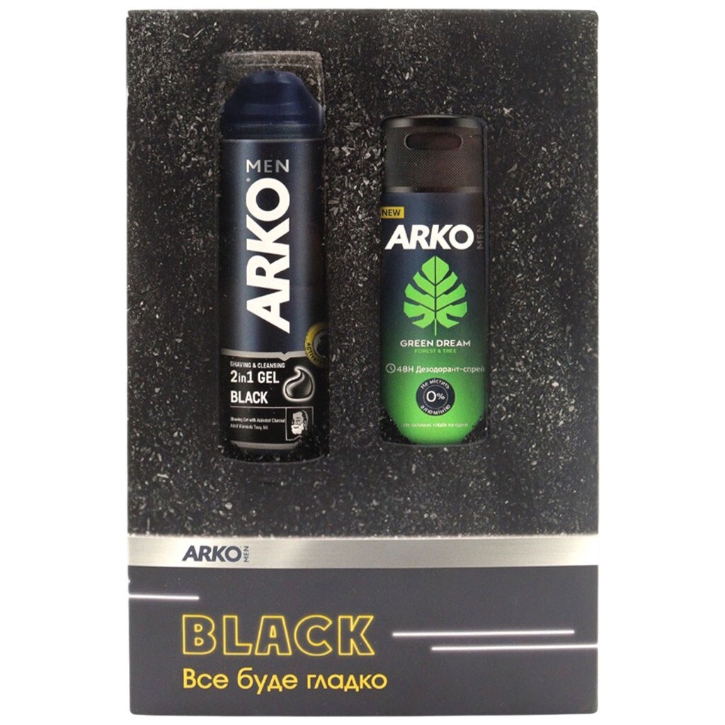 Набір подарунковий ARKO MEN Black: гель для гоління+дезодорант-спрей "Грін Дрім"