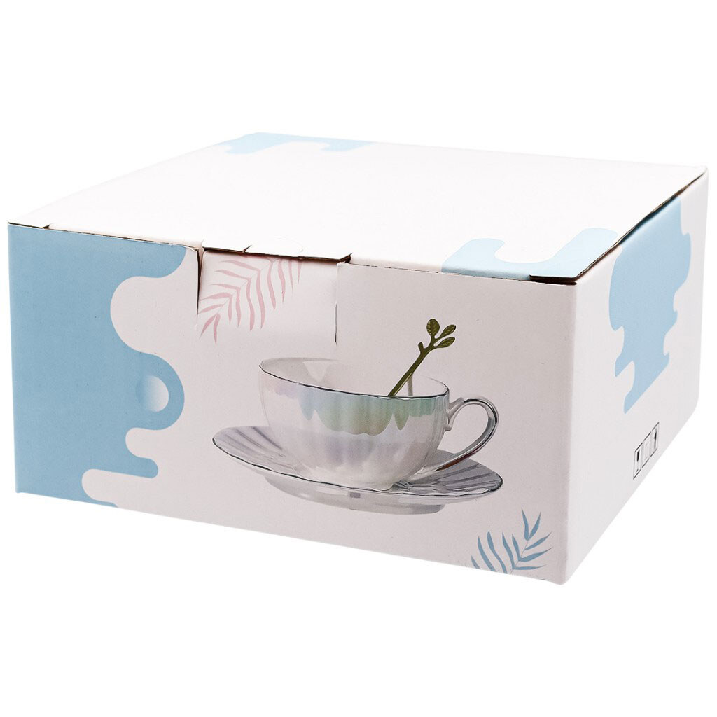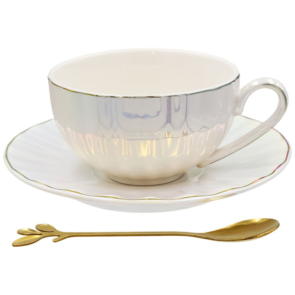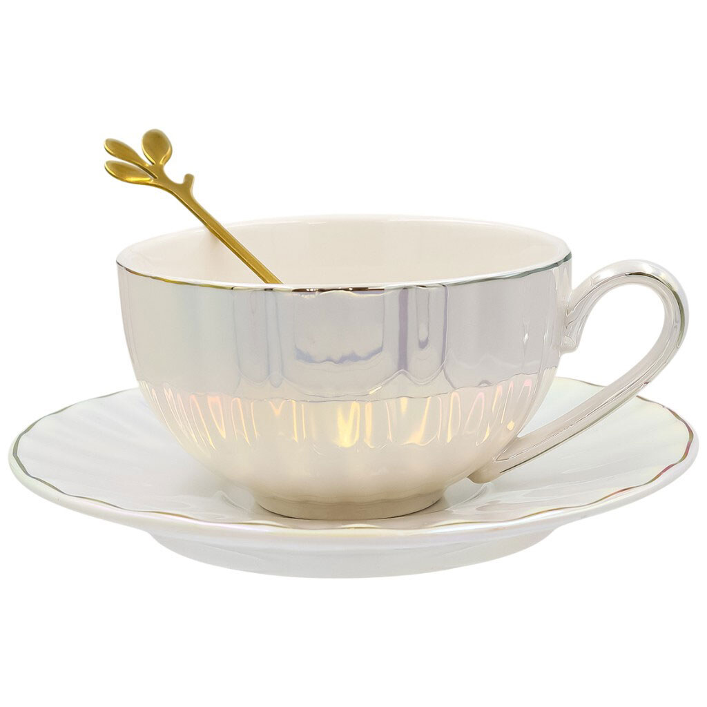 Набір посуду: чашка, блюдце порцелянові хвилясті+ложка