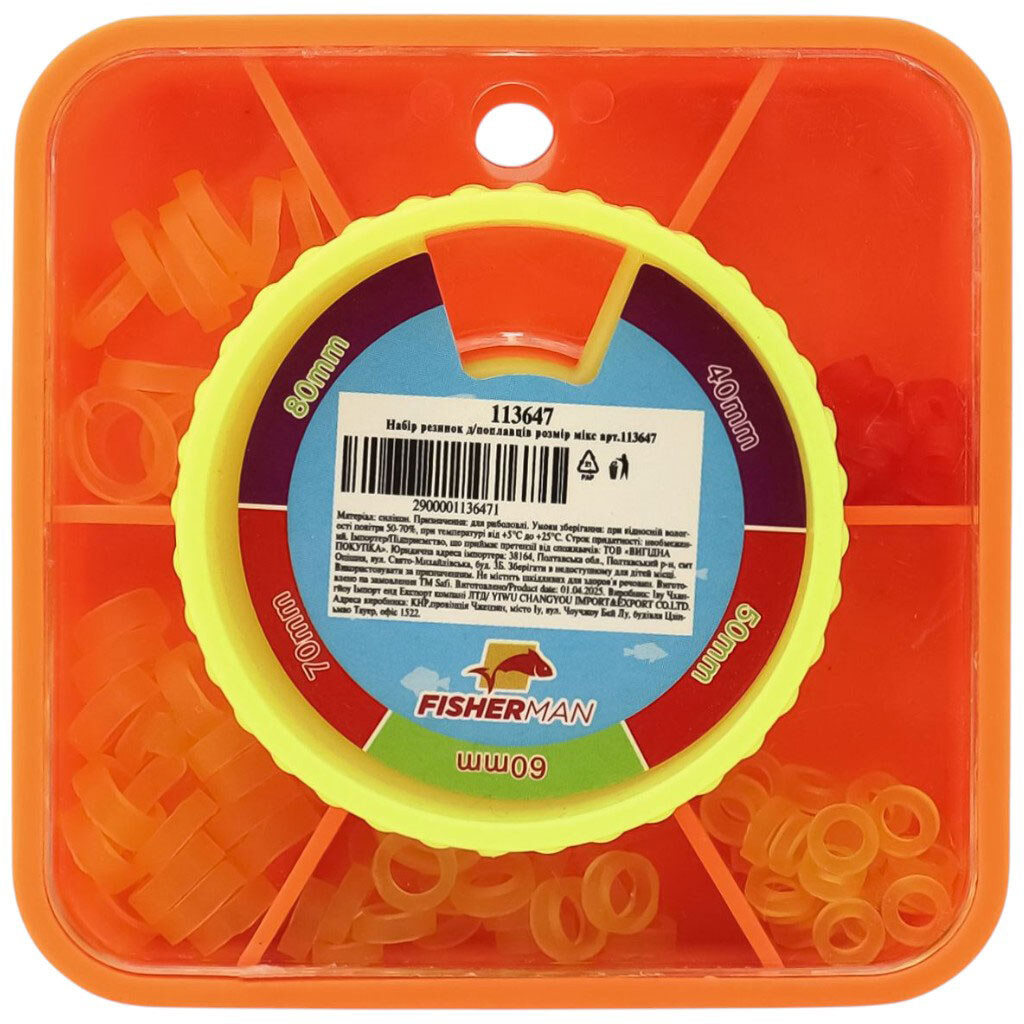 Примітка: Комплектація: 5 розмірів (40 мм, 50 мм, 60 мм, 70 мм, 80 мм) | Країна виробник: Китай | Матеріал: Силікон | Призначення: Для риболовлі | Розмір: 7х7х1,5 см