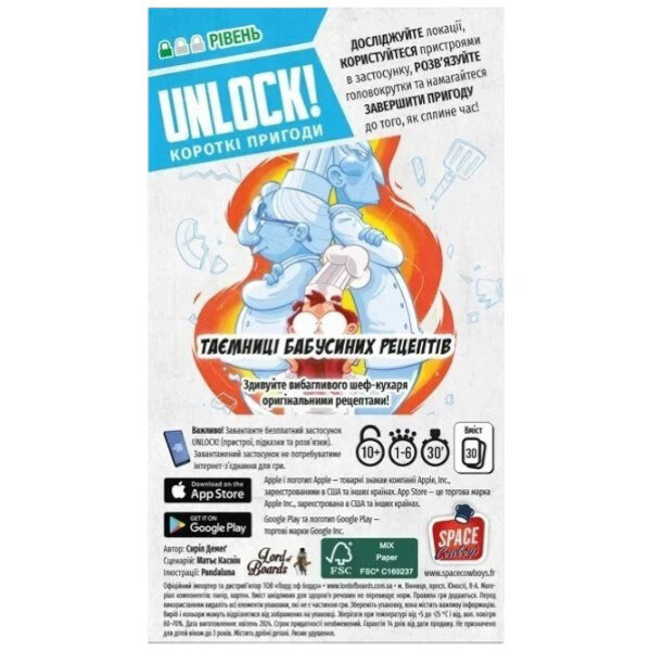 Настільна гра "Unlock! Короткі пригоди. Таємниці бабусиних рецептів", Lord of Boards