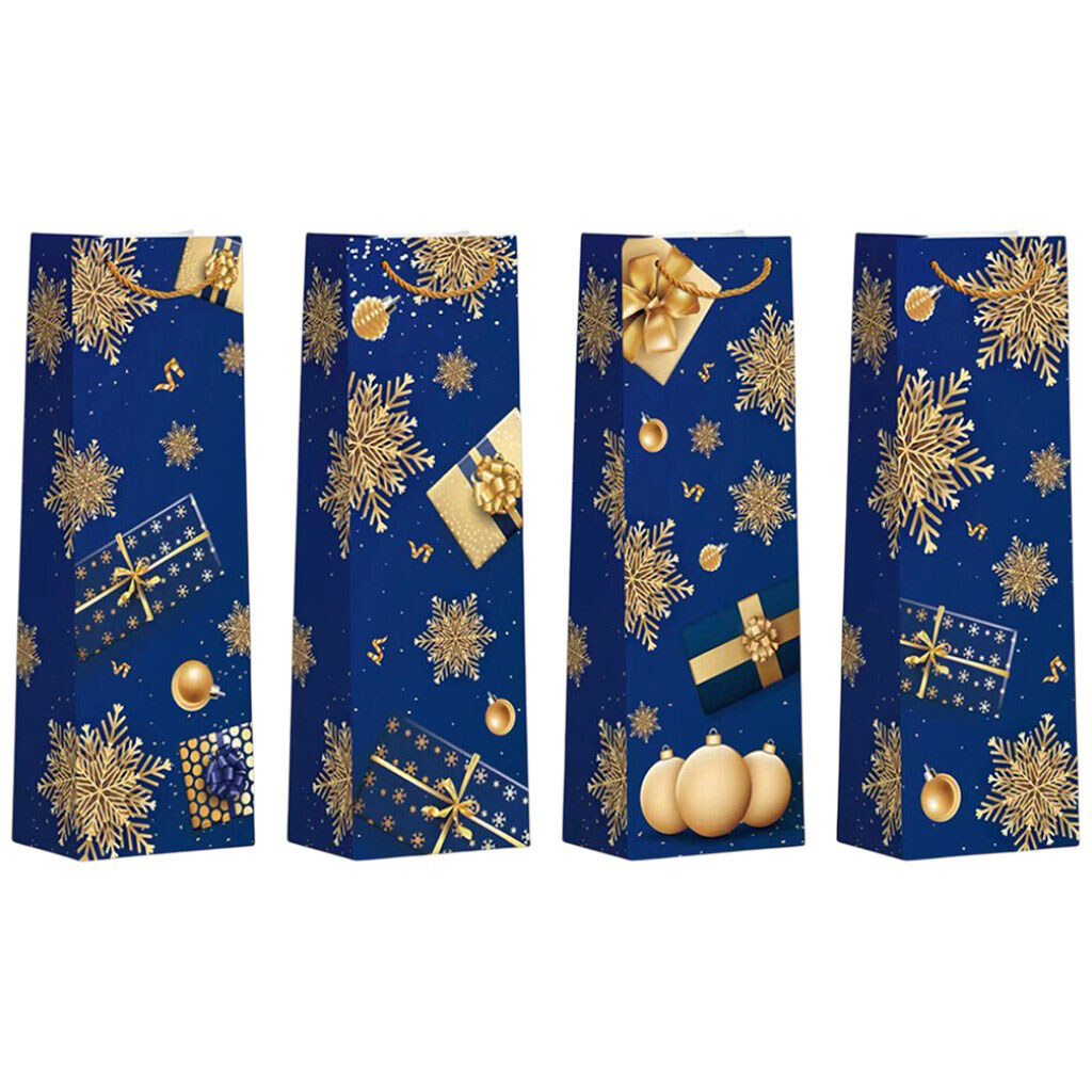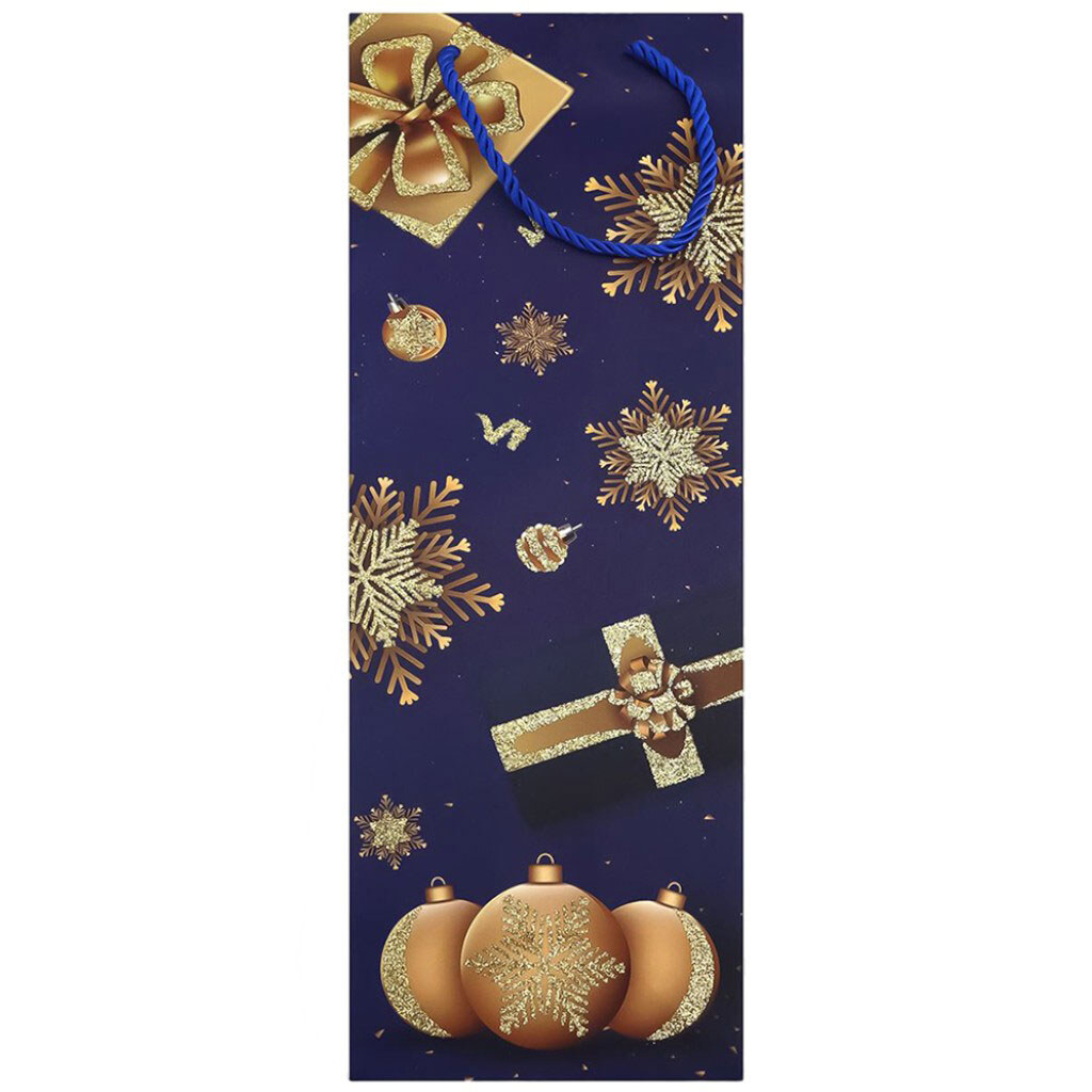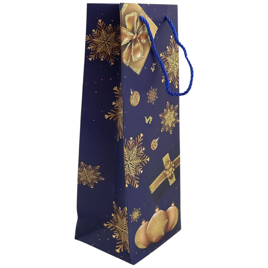 Пакет подарунковий паперовий для пляшки "Різдвяний", синій, 12х35х9 см