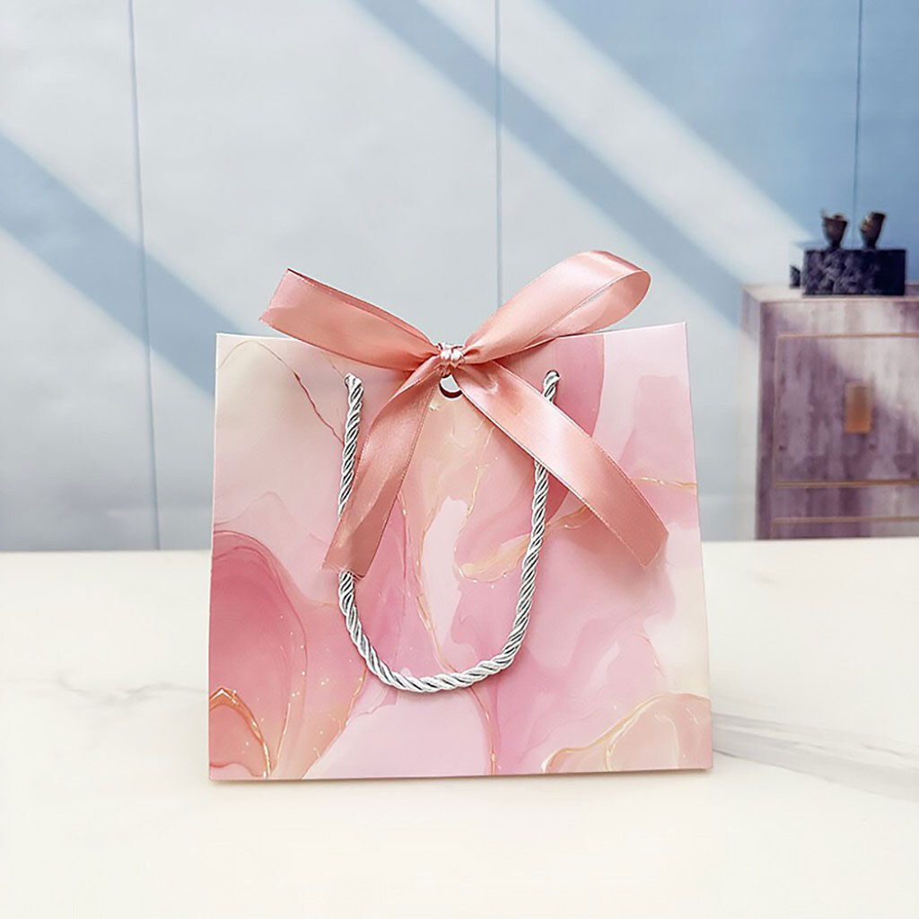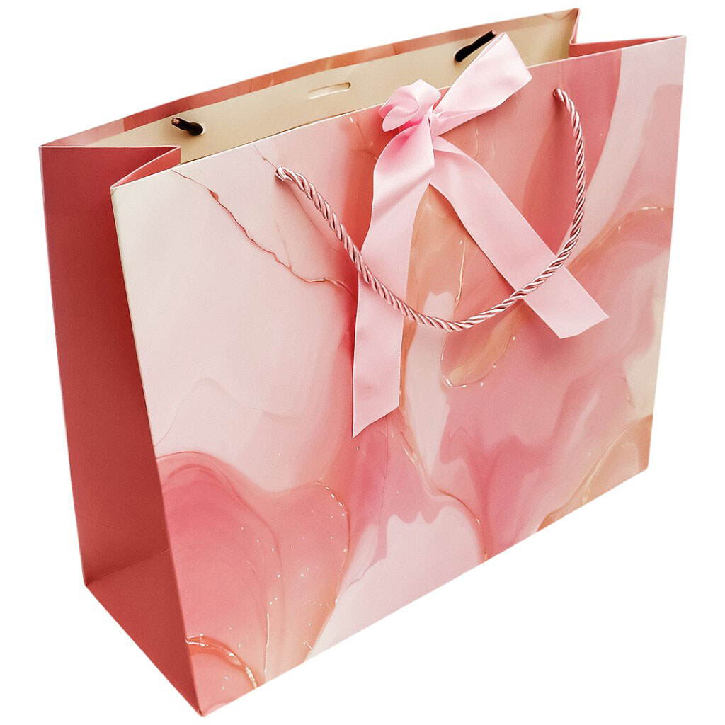 Пакет подарунковий паперовий з бантом "Мармур", 32х25х10 см