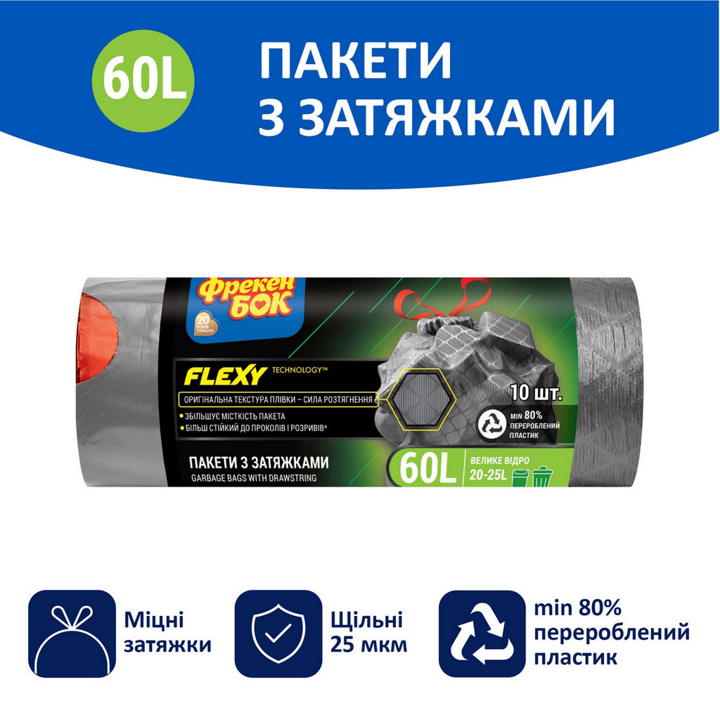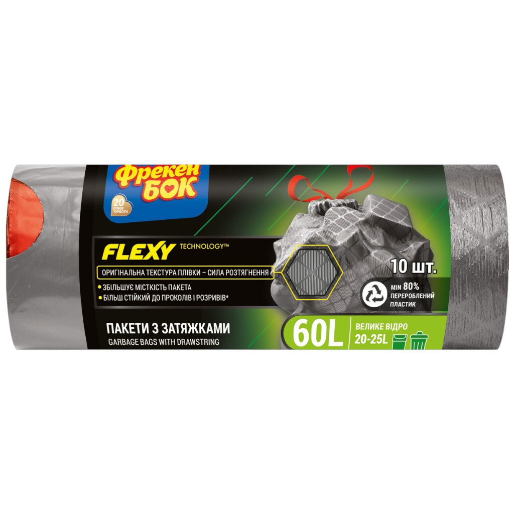 Пакети для сміття Фрекен Бок Flexy з затяжками графіт 60 л