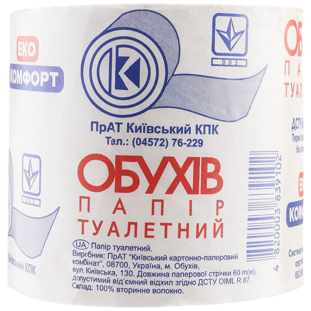 Папір туалетний з макулатури ОБУХІВ Еко комфорт, 1 рулон