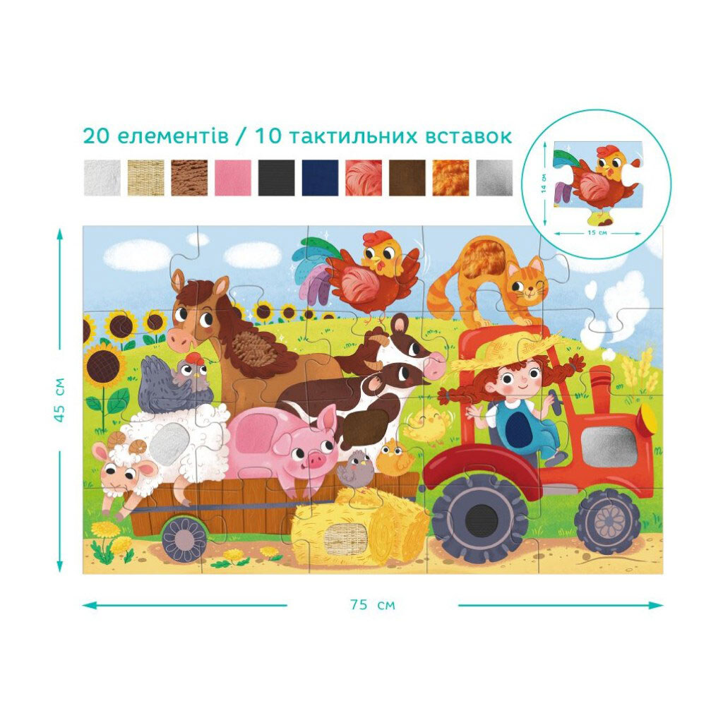 Пазл із тактильними елементами «За кермом трактора», 20 ел, Dodo
