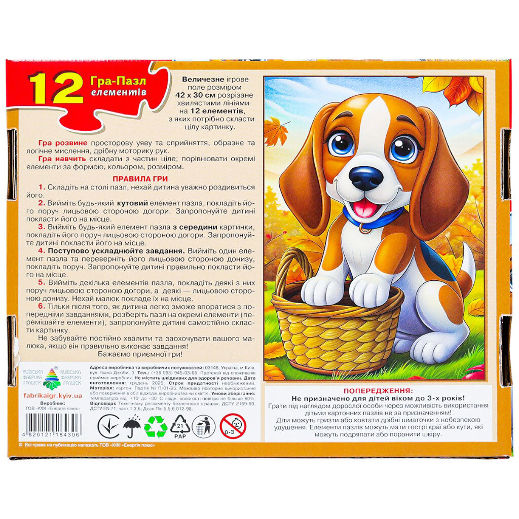 Пазли дитячі картонні, 12 елементів, Київська Фабрика Іграшок