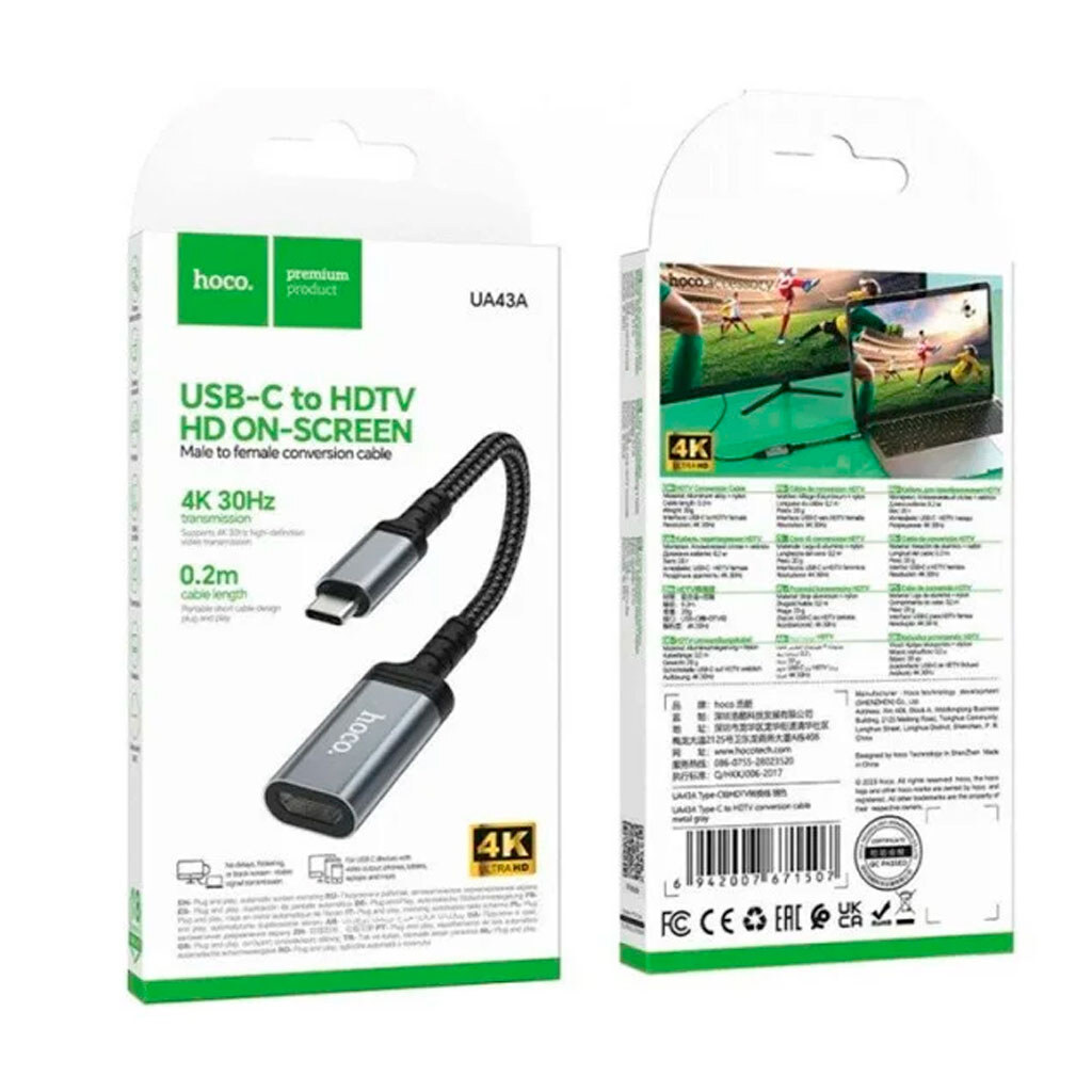 Перехідник Hoco UA43A, Type-C, HDMI, Сірий
