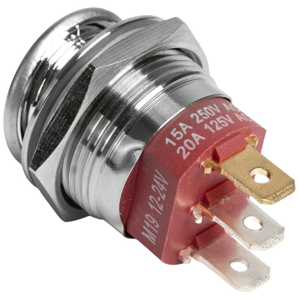 Примітка: Виробник: Daier | Монтаж: Клеми з отвором Опис: Перемикач металевий Rocker ON-OFF (SPST) з фіксацією, 3 контакти, з синім підсвічуванням 12V (овал на кнопці). Монтажний розмір 22мм. | Кількість положень: 2 | Вантажна здатність: 20 A / 12 V