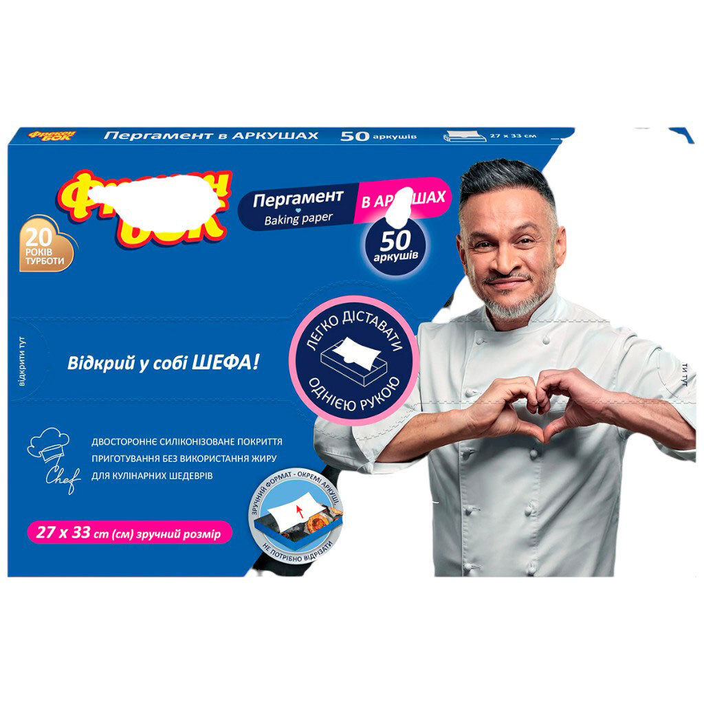 Пергамент для випічки силіконізований з диспенсером "Фрекен Бок", 27х33 см, 50 шт/кор