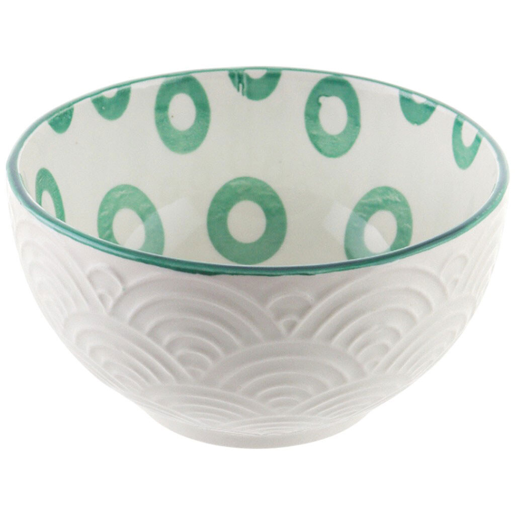 Піала керамічна кругла біла із зеленим малюнком, d=11,8 см
