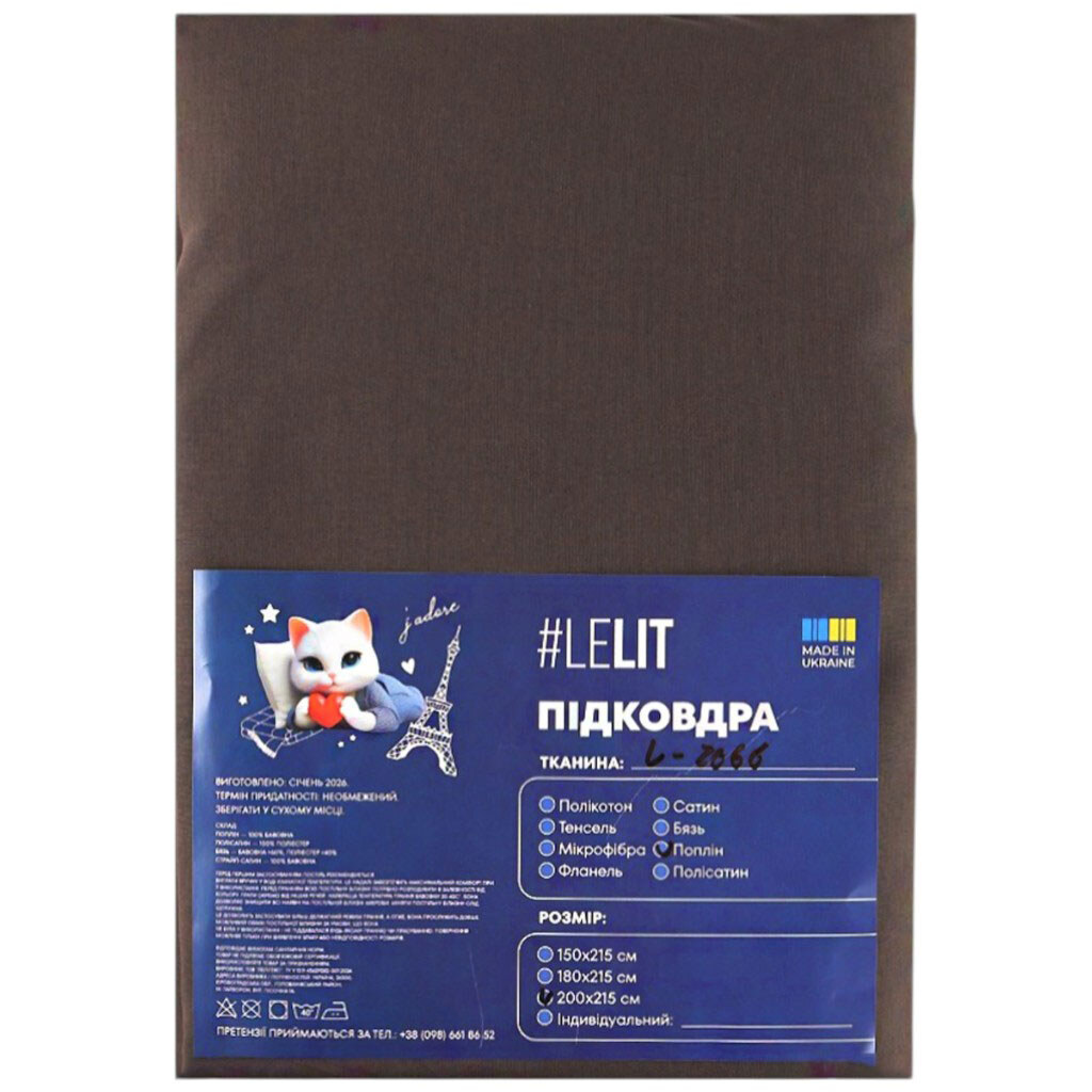 Примітка: Країна походження: Україна | Матеріал: Поплін | Розмір: 200х215 см | Склад тканини: 100% бавовна