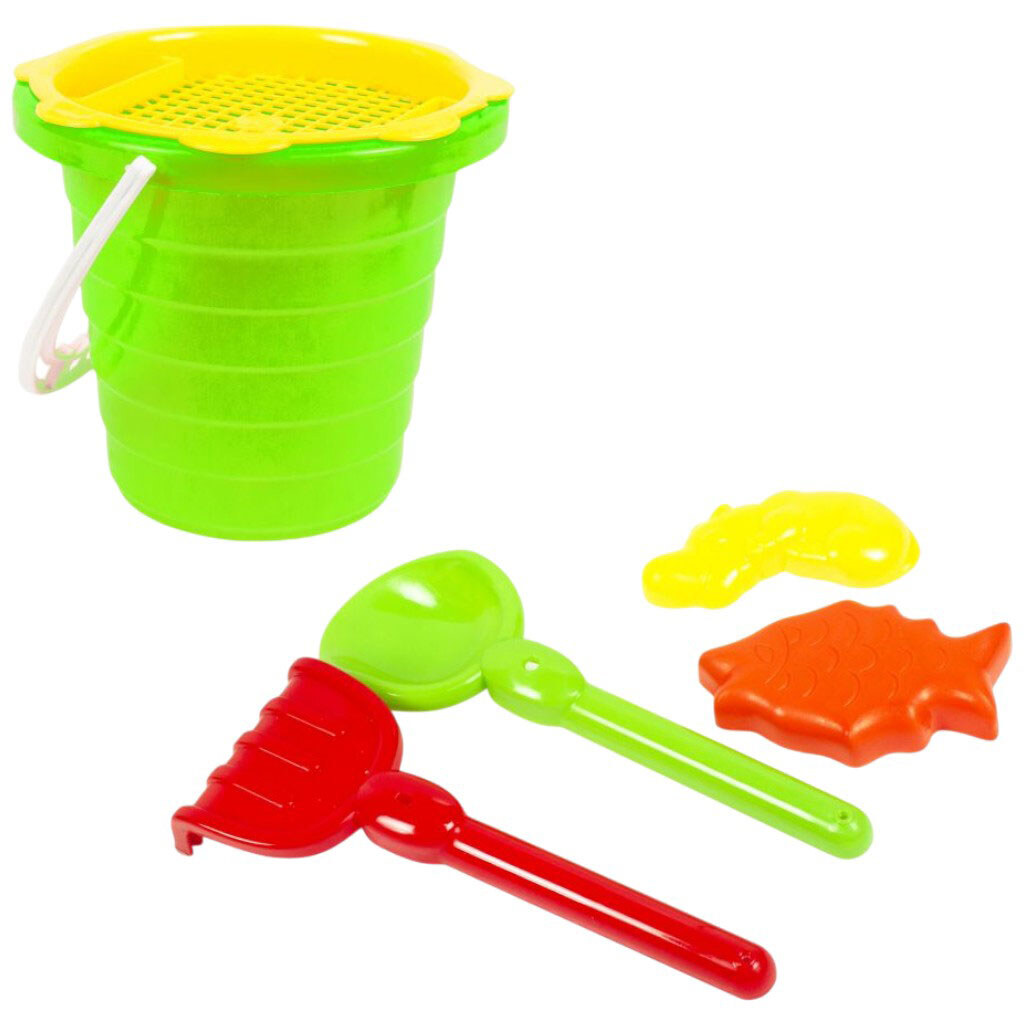 Примітка: Упаковка: Сітка | Вага в упаковці: 190 г | Габарити в упаковці: 26 x 16 x 16 см | Країна виробник: Україна | Комплектація: Відро, лопатка, граблі, 2 пасочки, сито