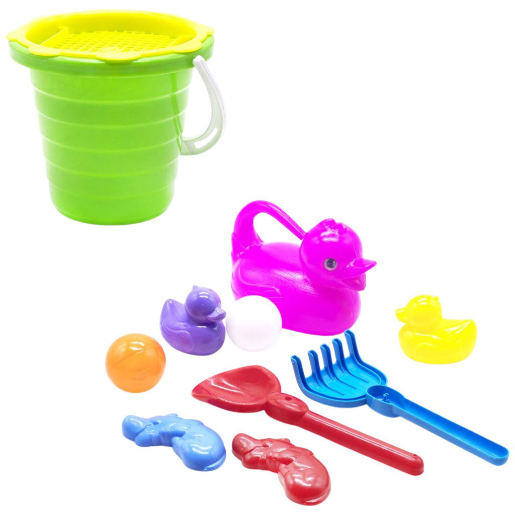 Примітка: Упаковка: Сітка | Вага в упаковці: 310 г | Габарити в упаковці: 20 x 22 x 28 см | Країна виробник: Україна | Комплектація: пластикове відерце, ситечко, лопатка, грабельки, 2 пасочки, 2 пластикові м'ячики, 2 качки