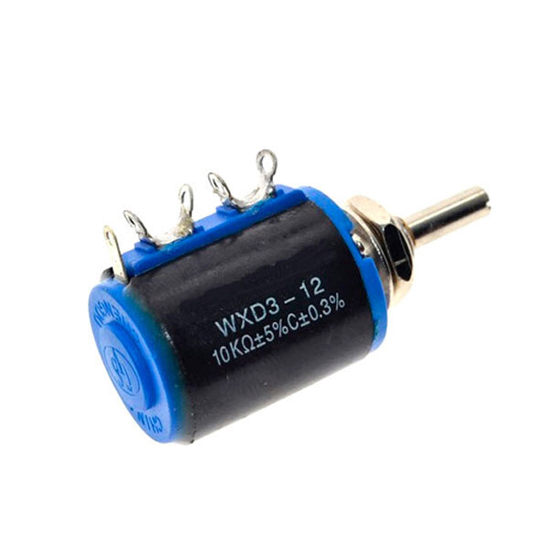 Багатооборотний прецизійний потенціометр WXD3-12-2W для точного регулювання величини опору. Застосовується для роботи в ланцюгах постійного, змінного та імпульсного струму. Комплектується ковпачком на ручку потенціометра.
