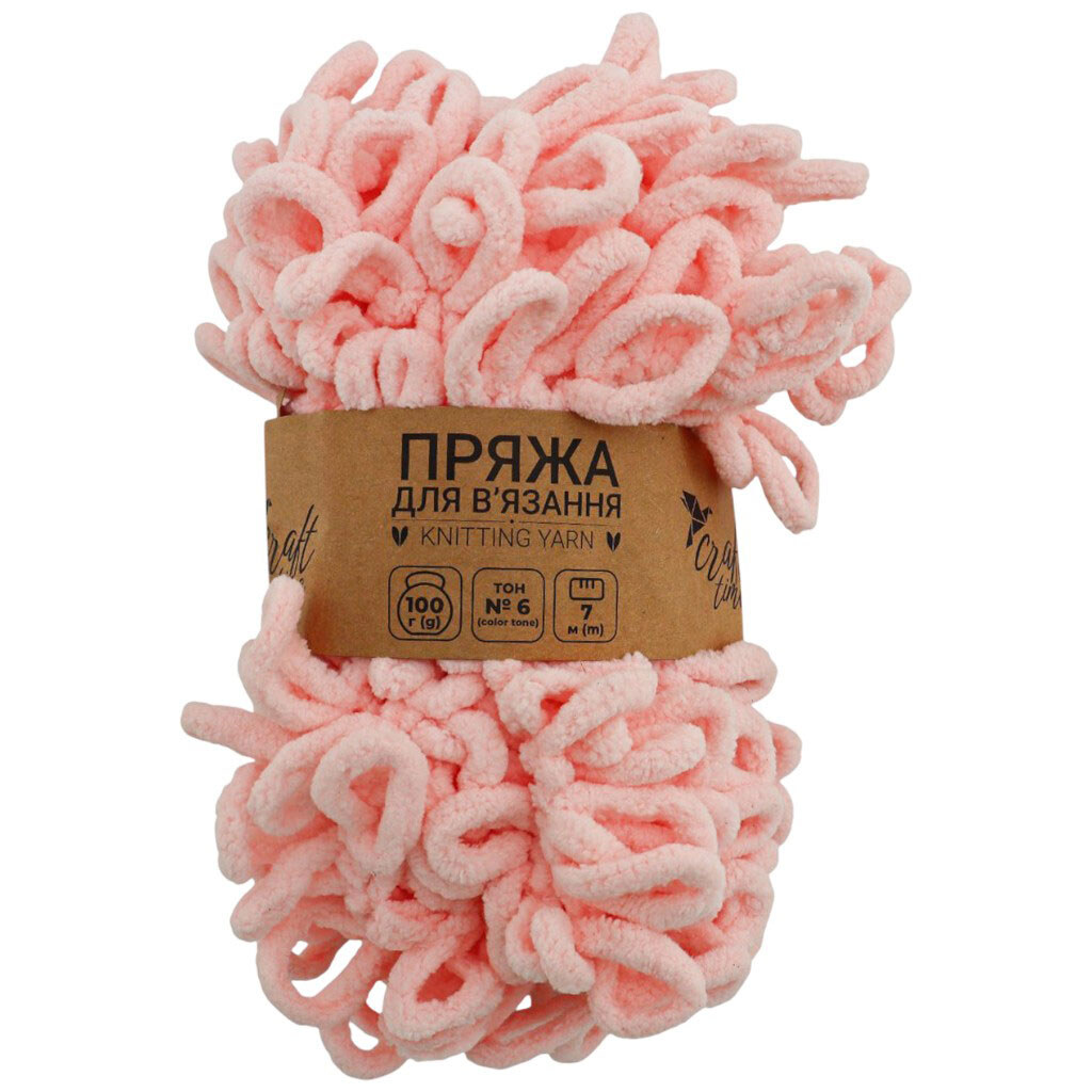 Пряжа для в'язання руками плюшева Craft time 100 г, 7 м тон №6