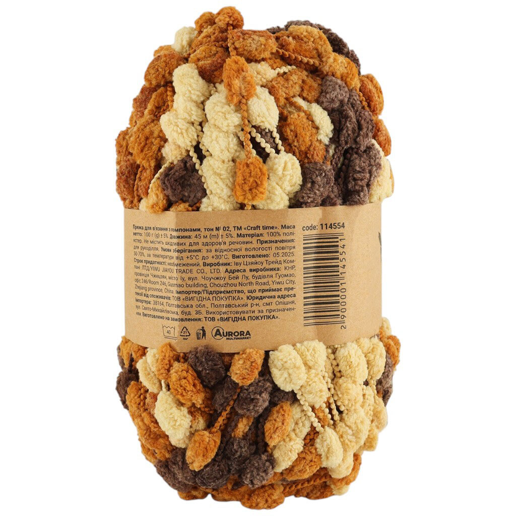 Пряжа для в'язання з помпонами Craft time 100 г, 45 м тон №02