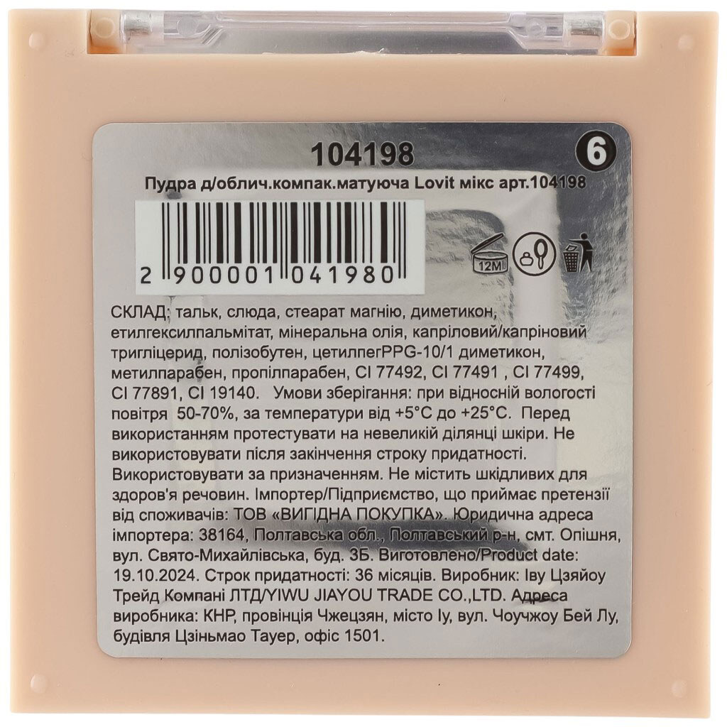 Пудра для обличчя компактна матуюча Lovit мікс